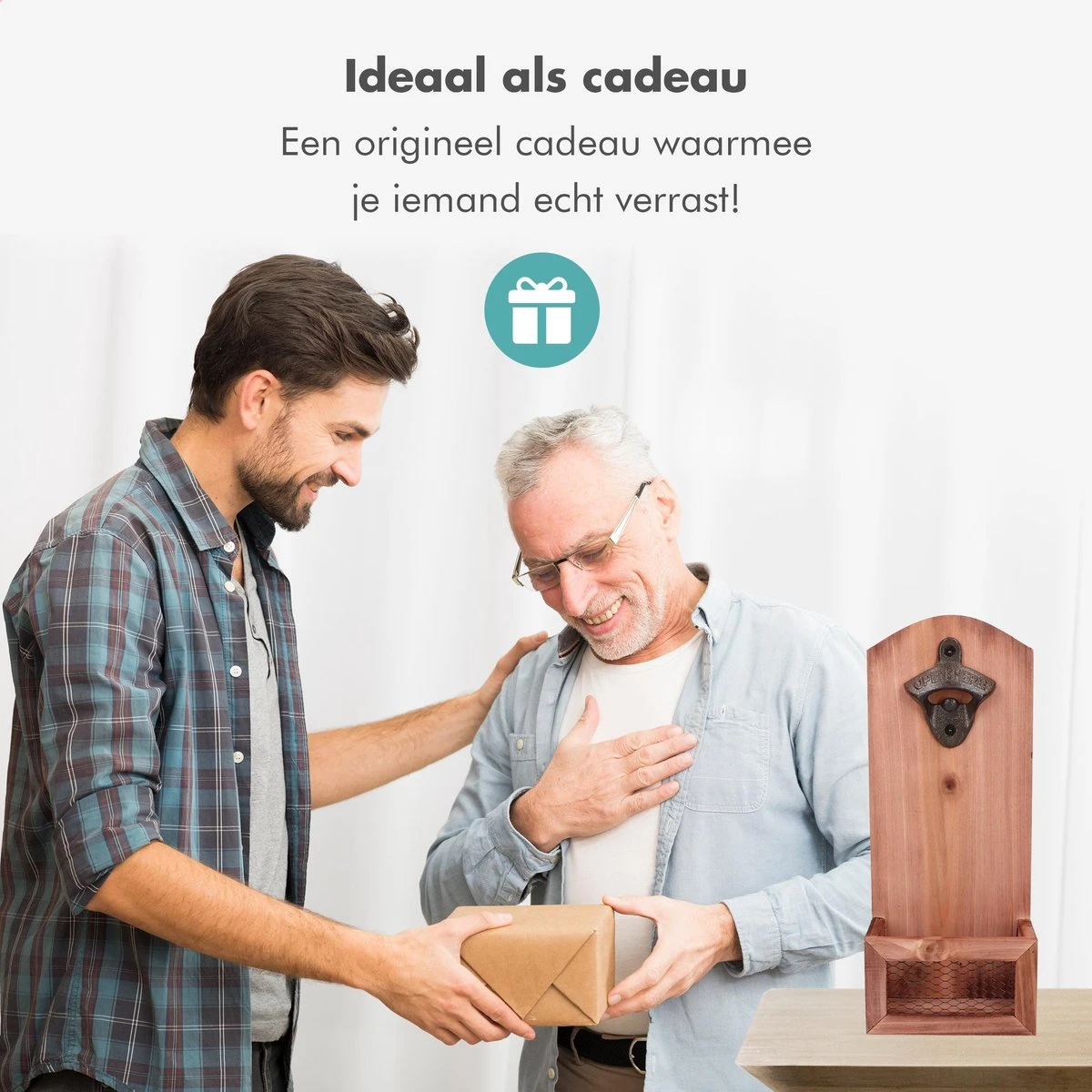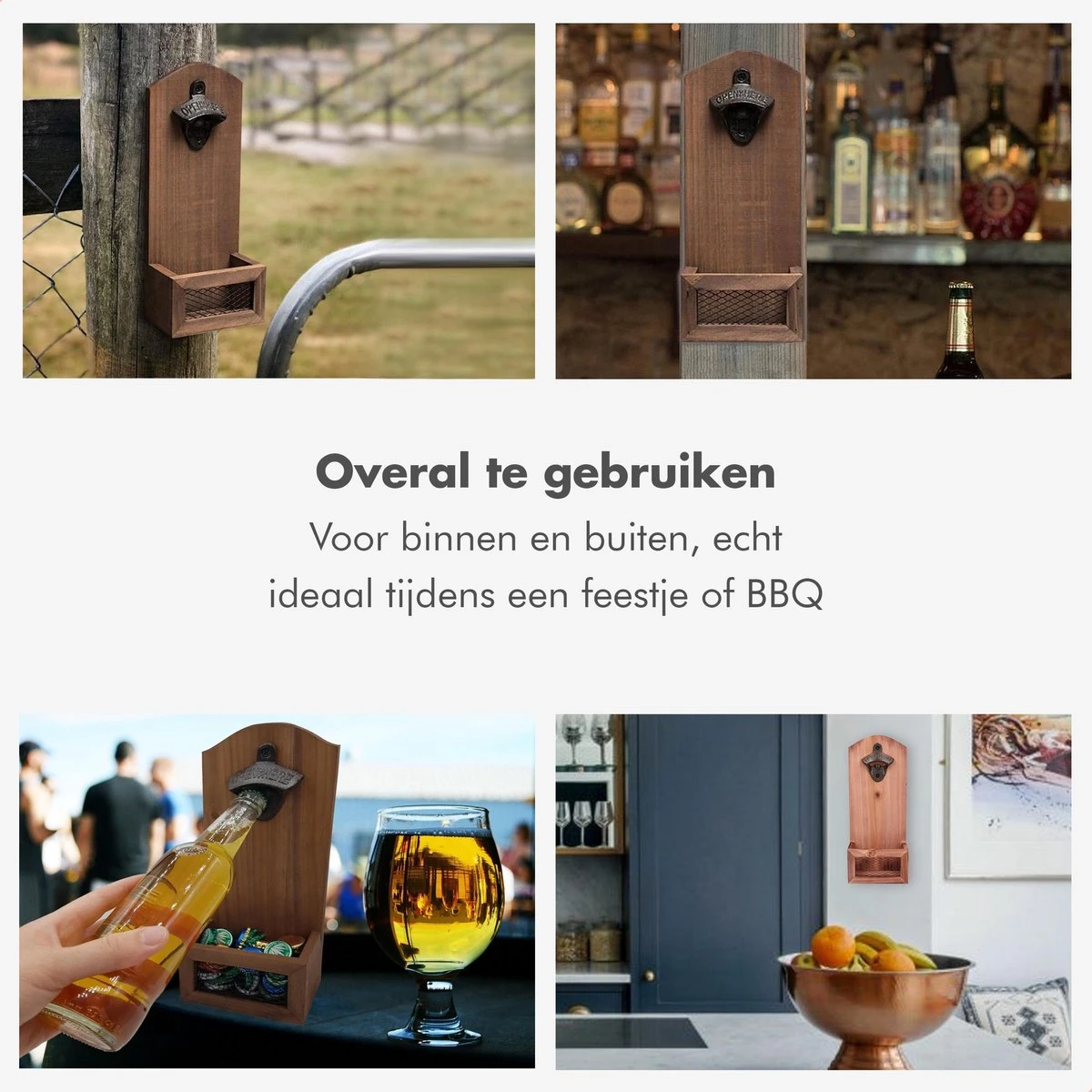 Deze flesopener is leuk om als cadeau te geven of natuurlijk om zelf te houden. Geschikt voor verschillende gelegenheden, zoals in een bar, mancave of bij je drankvoorraad. Het is voor zowel binnen- als buiten geschikt. De bieropener heeft een landelijke stijl en heeft een gietijzeren opener. Voor het opvangbakje zit een mat zwart gaasje. Aan de achterkant van de flesopener zit een ophanghaakje waarmee je het gemakkelijk aan de muur kan bevestigen.