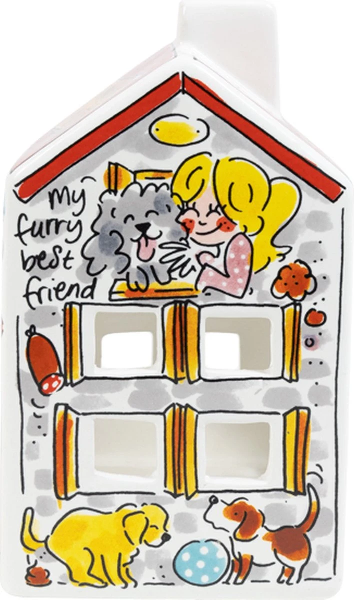 Dog Lovers opgelet! De hondencollectie van Blond Amsterdam is uitgebreid met dit schattige theelichthuisje. Er komt sfeervol licht door de raampjes van het huisje. Versier je huis met dit vrolijke huisje waar allerlei honden op staan en de tekst ‘Home is where my dog is’ en ‘Let me out’!