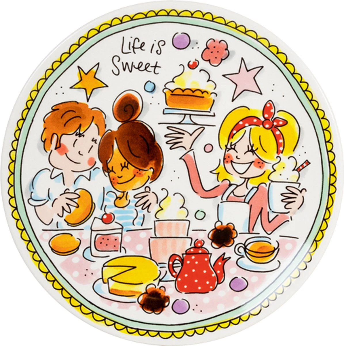 De collectie Even Bijkletsen is nog steeds de grote favoriet van vele Blond-liefhebbers. De nieuwe items zijn leuk om met elkaar te combineren, maar passen ook heel goed bij onze huidige Even Bijkletsen items. Op dit taartbord staan onze herkenbare, vrolijke illustraties en deze heeft een mintgroene rand. Op het bordje staat de tekst: “Life is sweet” Eet smakelijk!