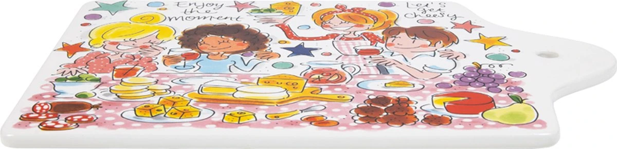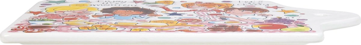 Dit vrolijke en vooral kleurrijke nieuwe kaasplankje is onderdeel van de Even Bijkletsen collectie. Door de vrolijke en kleurrijke illustraties maakt dit plankje jouw tafel nog gezelliger. Het design van het plankje is in lijn met de nieuwe Even Bijkletsen items maar is ook leuk om te combineren met de andere items van Even Bijkletsen of andere collecties. Dit plankje is net iets groter dan onze huidige plankjes. Leuk om de borrelhapjes op te serveren maar ook leuk voor zoete snacks!