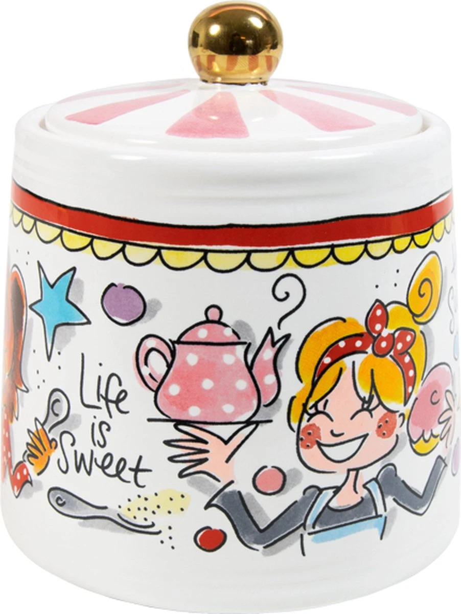 De collectie Even Bijkletsen is nog steeds de grote favoriet van vele Blond-liefhebbers. Het suikerpotje heeft een nieuwe vorm gekregen, maar is nog herkenbaar door de vrolijke tekeningen en leuke quotes op het potje. De nieuwe items zijn leuk om met elkaar te combineren, maar passen ook heel goed bij onze huidige Even Bijkletsen items.