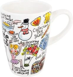 Deze XL beker Things behoort tot de collectie Favorites van Blond Amsterdam. Op de beker staan verschillende leuke bezigheden of gebeurtenissen waarvan je al snel gelukkig wordt. Dansen zonder schaamte, een dag naar het strand, mooie bloemen ontvangen of misschien wel lekker online winkelen.