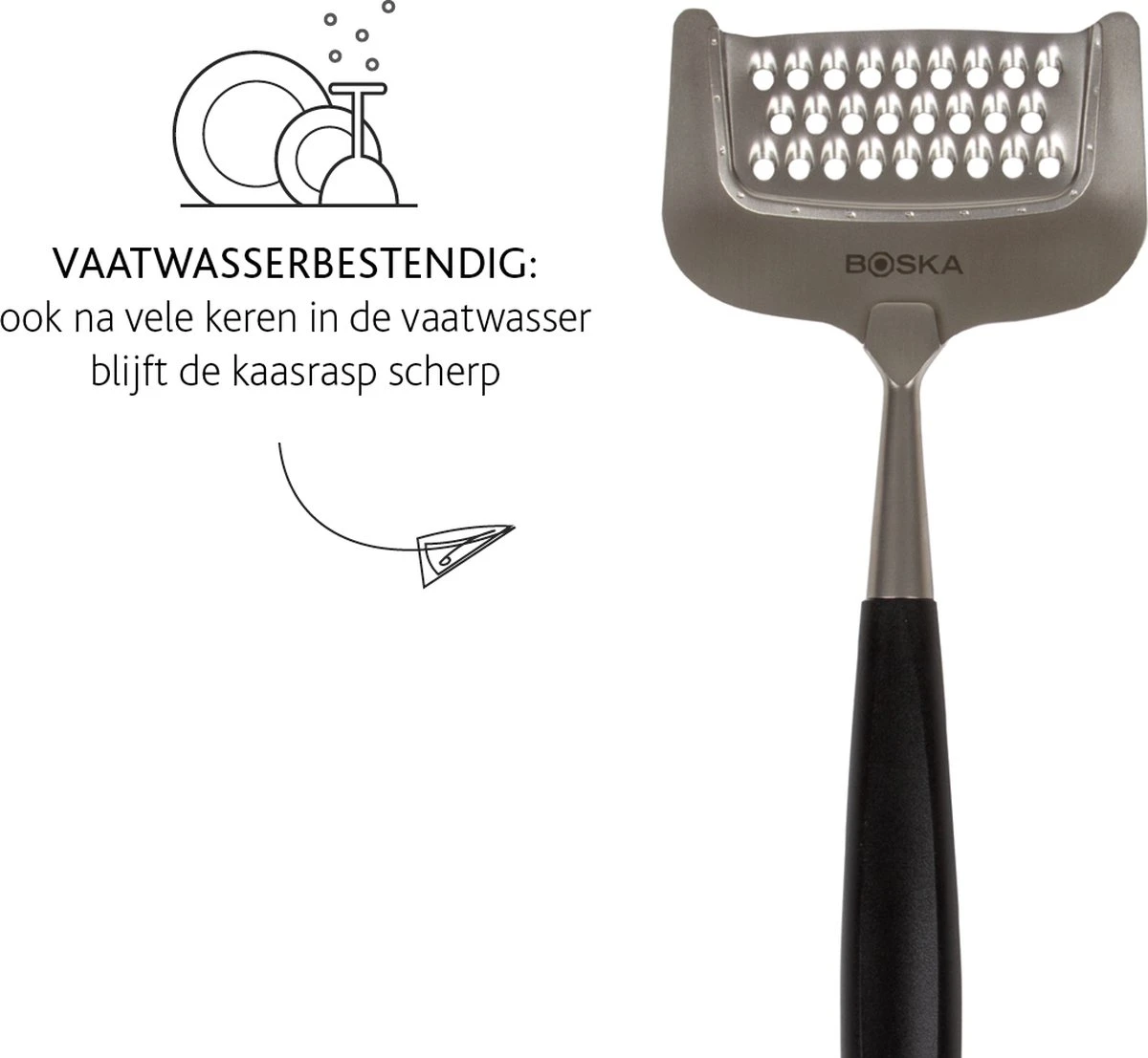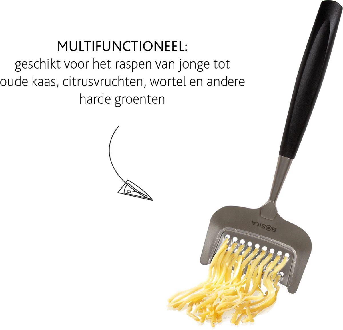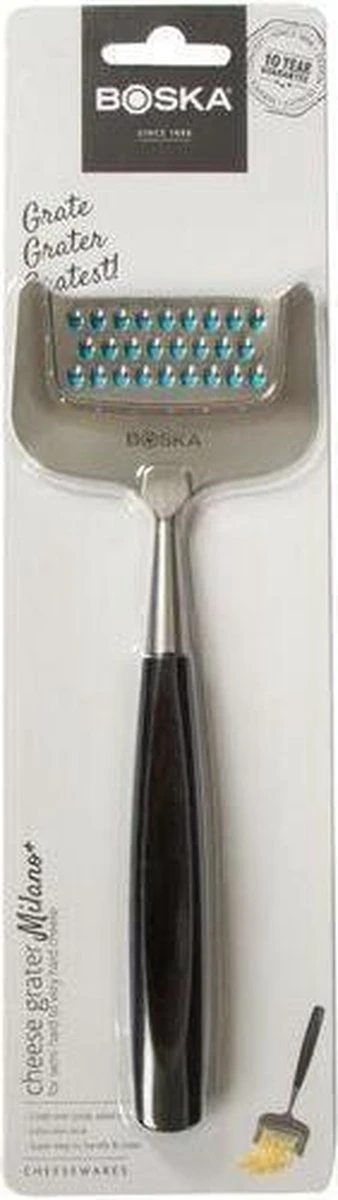 Italianen houden van comfort. BOSKA ook! Daarom is het handvat van deze rasp verbetert en extra lang: ligt heerlijk in de hand. Door de rasp van roestvrijstaal en het handvat van kunststof zet je de Kaasrasp Milano+ gewoon in de vaatwasser. Klaar voor nog 10 jaar met garantie schaven.