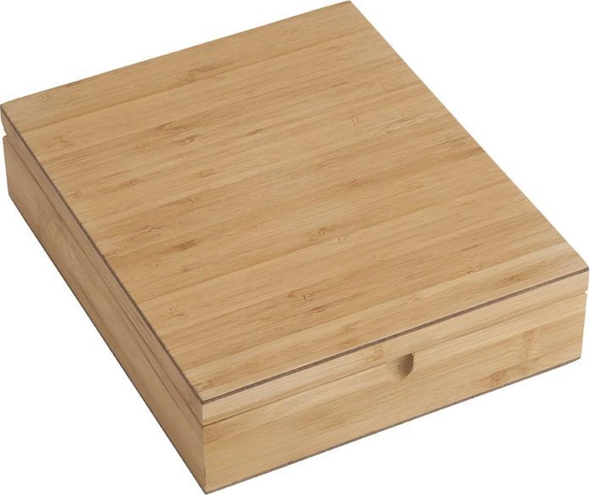 Berg al je favoriete theesmaakjes op in deze handige theedoos van Bredemeijer. De theedoos heeft 9 vakjes en is gemaakt van mooi en duurzaam bamboe. Dit materiaal geeft het geheel een chic uiterlijk. De theedoos is voorzien van een gesloten deksel.