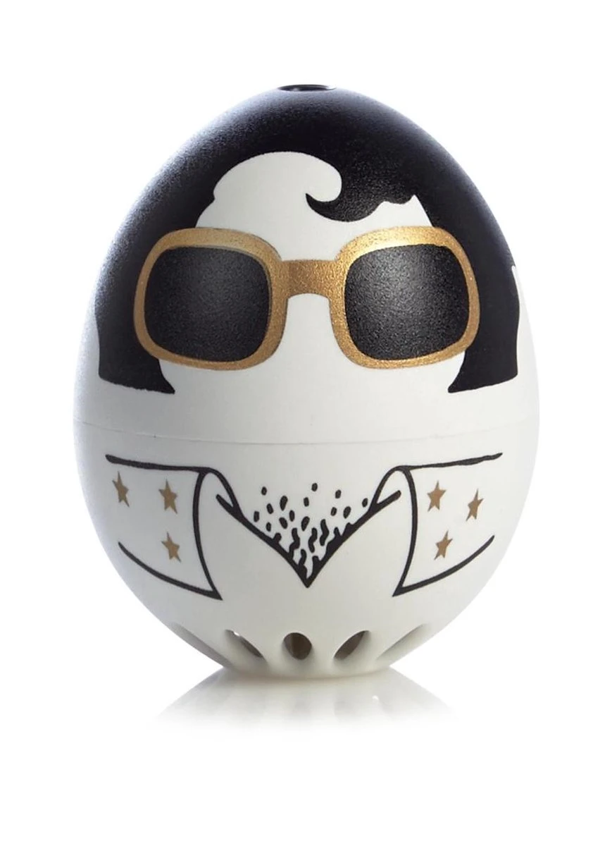 Altijd het perfect gekookte eitje met het piepei Elvis van Brutus Kookt! Bewaar je piepei altijd bij de echte eieren zodat het dezelfde temperatuur heeft, kook het piepei met de eieren mee en het zal diverse melodietjes afspelen: ‘Viva las Vegas’ (zacht gekookt), ‘Hound dog’ (middel hard gekookt) en ‘Jailhouse Rock’ (hard gekookt).
