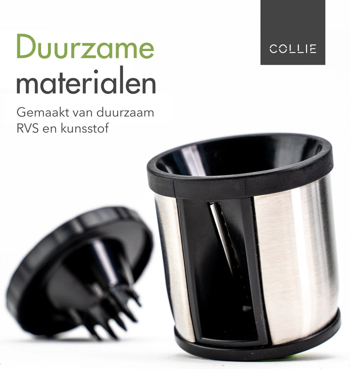 Met de spirelli van COLLIE maak je gemakkelijk in je eigen keuken slierten van courgette, wortel, biet en alle andere groenten. Of je nu een beginner of veteraan in de keuken bent; deze groentesnijder ligt goed in de hand en is veilig in gebruik. Klaar met koken? Maak de spirelli schoon met de bijgeleverde schoonmaakborstel, of zet het in de vaatwasser. De spirelli berg je dankzij het kleine formaat gemakkelijk op.