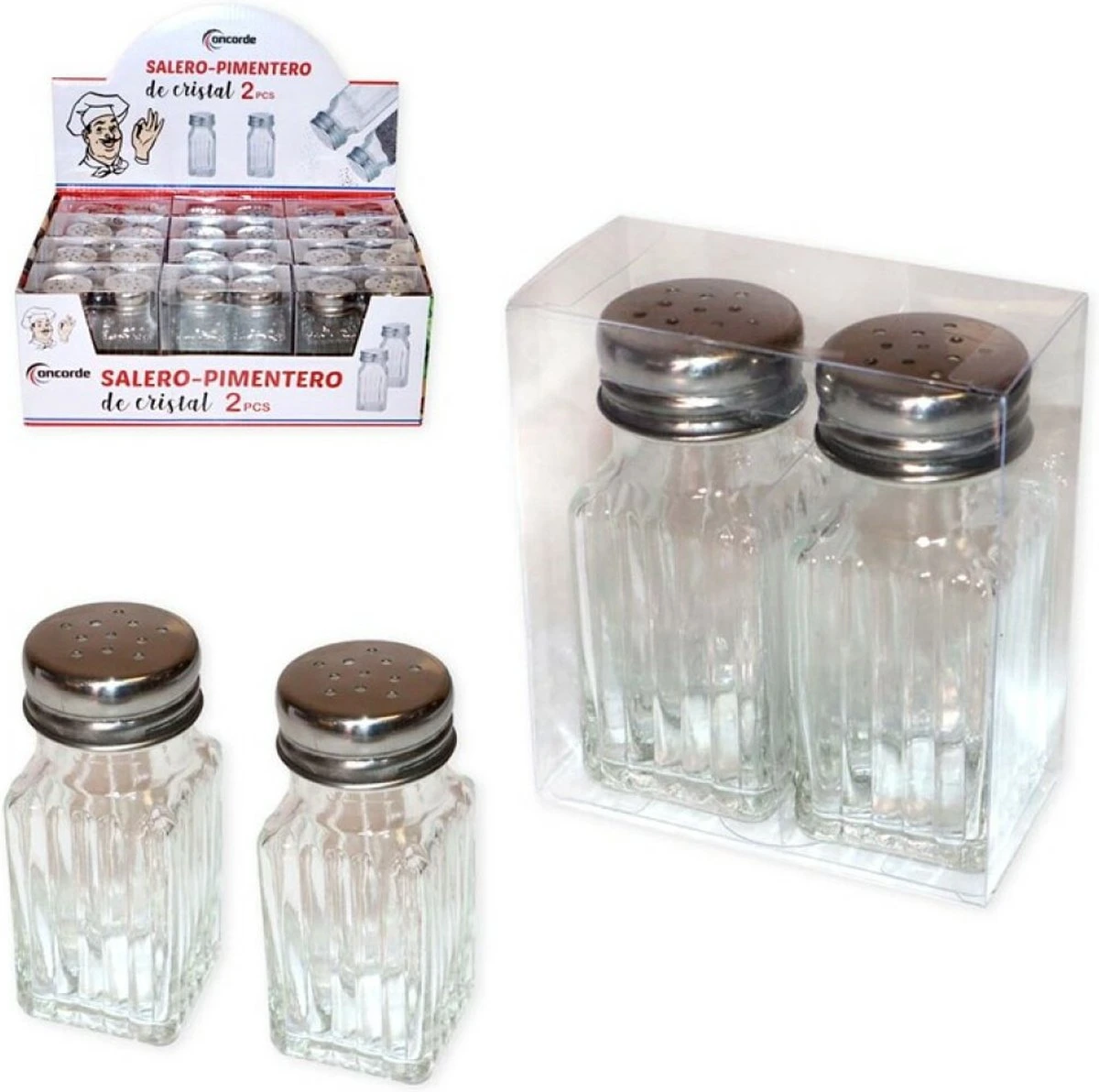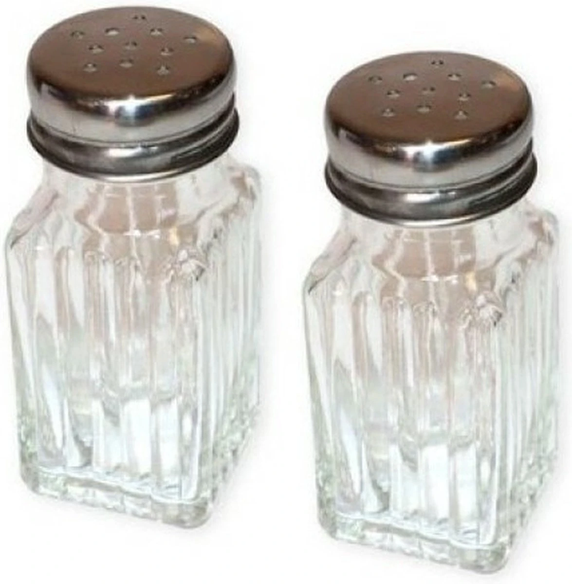 Deze set van peper en zout strooiers is perfect voor bij het eten of is makkelijk in gebruik te nemen bij het koken. Kan naast peper en zout ook gebruikt worden voor verschillend andere specerijen en kruiden. De set is gemaakt van glas en is voorzien van een metalen dop. Formaat per potje: 4 x 9 cm.