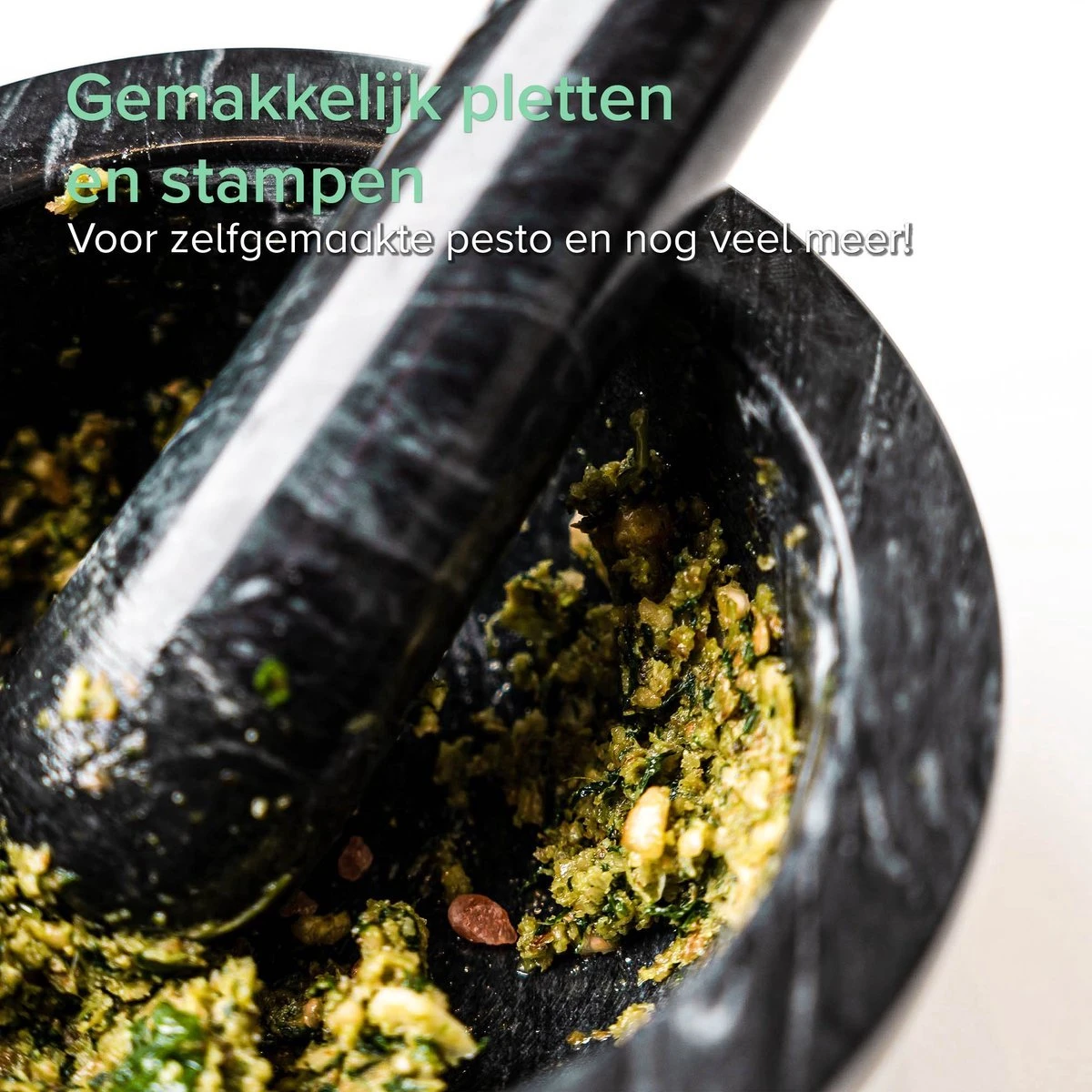 De materialen zijn zwaar waardoor het product niet om valt tijdens het stampen of vermalen. De gepolijste binnenkant is krasbestendig en de buitenkant heeft een natuurlijke look. Naast het gebruiken kun je de vijzel en stamper ook als decoratie gebruiken. Met een stevige bodem direct klaar voor gebruik. Een gebruiksvriendelijke, veilige en stijlvolle levenslange keukenoplossing!