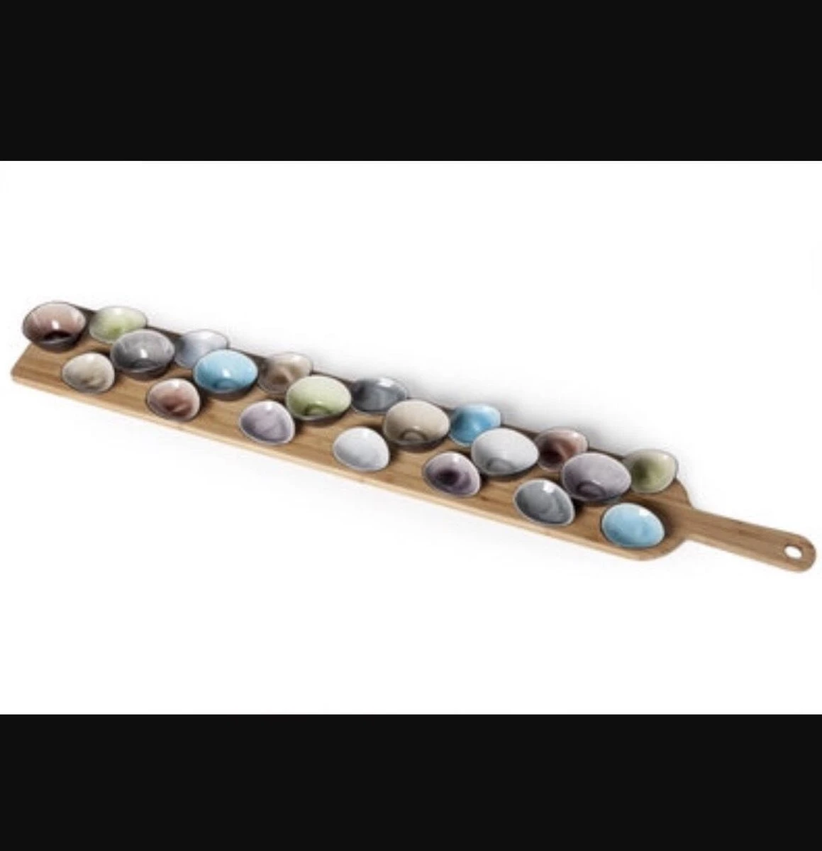 “Organische Streetfood Festival schaaltjes van Cosy&Trendy, een bonte mengeling van speciale tinten. Deze schaaltjes zijn geschikt voor aperitiefhapjes, bijgerechtjes, tapas, fingerfood. 10 kleuren die perfect passen bij het kleurrijke voedsel van verschillende continenten dat doorgaans bij foodtrucks op de kaart staat.