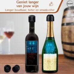 Vacuüm Wijnstopper & Champagne Stopper – Wijn Accessoires – Flessenstop – Herbruikbaar – Zwart