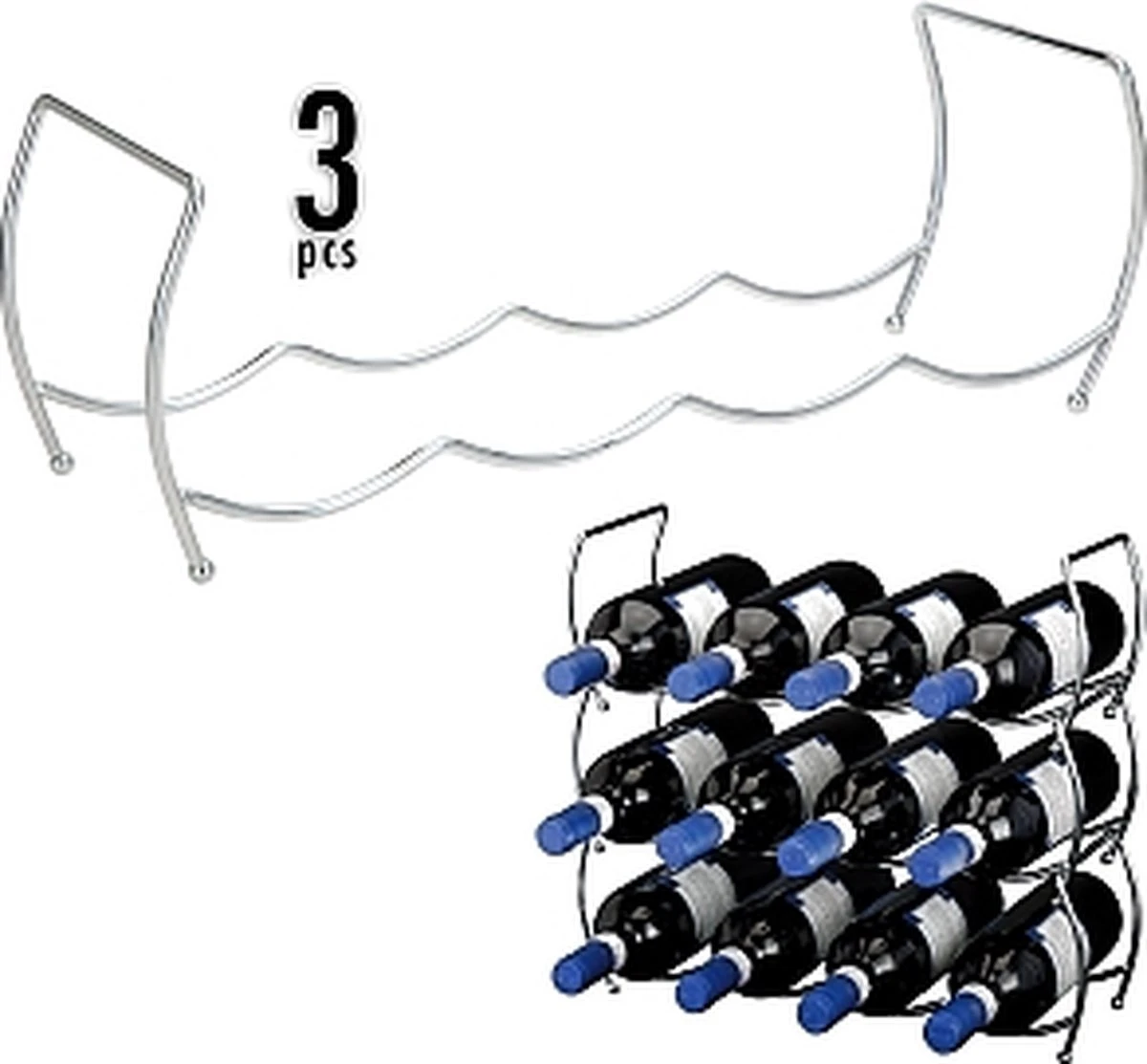 Handig 3-delig stapelbaar wijnrek van het merk Excellent Houseware is gemaakt van verchroomd roestvrij staal.