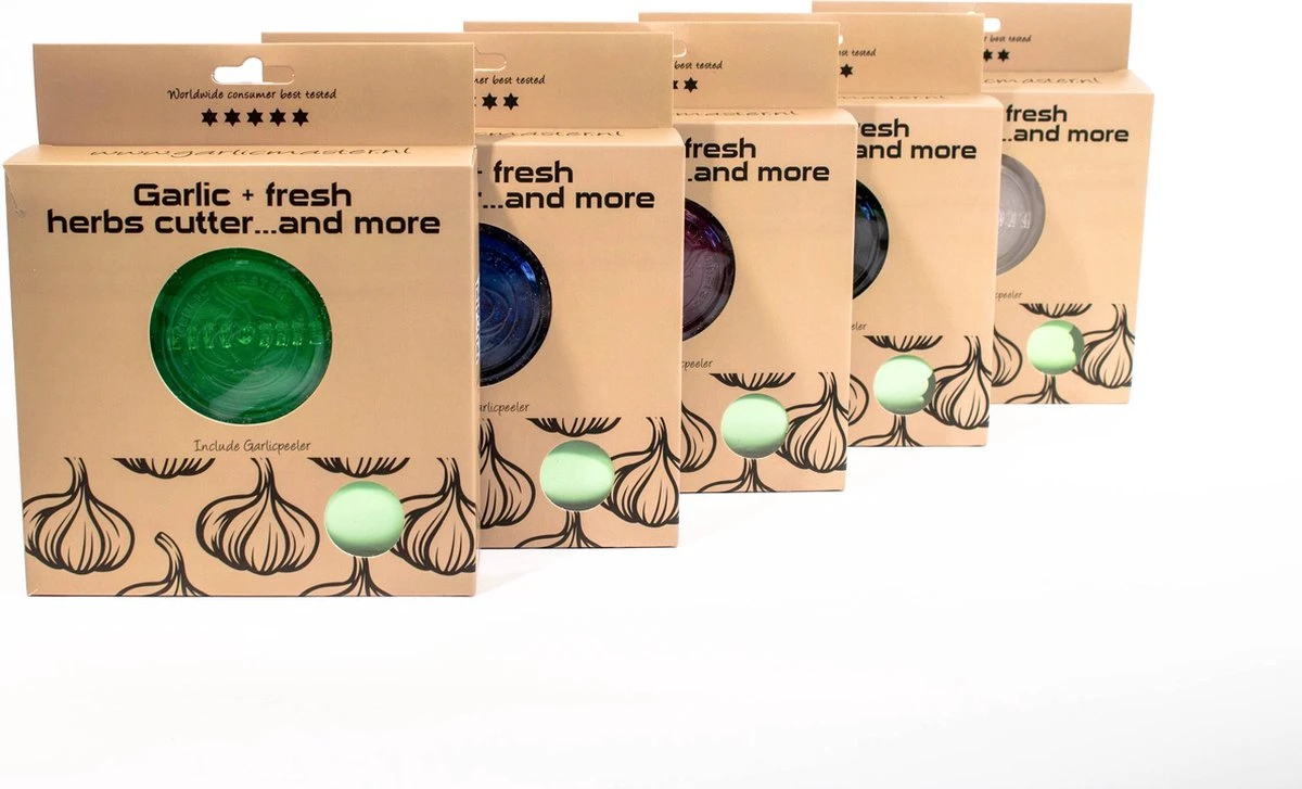 Nu zeker geen ruikende handen meer! Knoflook grof en fijn snijden! Snel in gebruik en snel schoon in de vaat of vaatwasser! Ook voor je pepers, gember, uitjes, olijven, verse kruiden en noten.