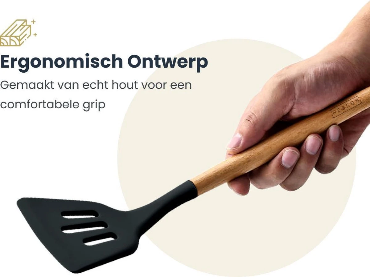 Hescom bied precies wat jij nodig hebt om echt van je keuken te kunnen genieten. Deze spatel is puur topkwalitiet en mag niet ontbreken in je keuken. Daarnaast is ons materiaal bestendig tegen extreme hitte en daardoor dus uitermate handig voor jou kookkunsten.