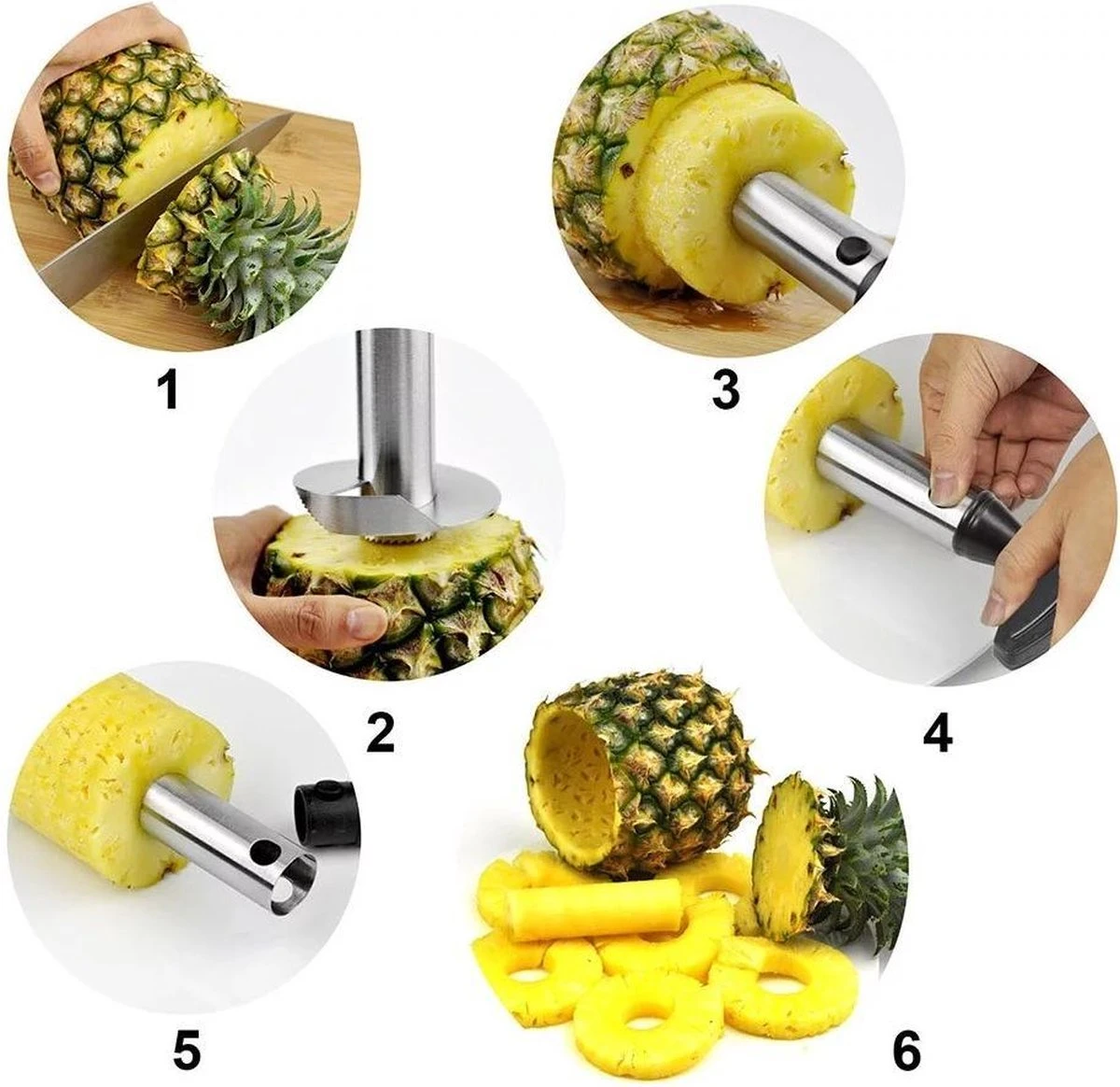 De ananaspeller is: Perfect voor het schillen, boren en snijden van ananas.