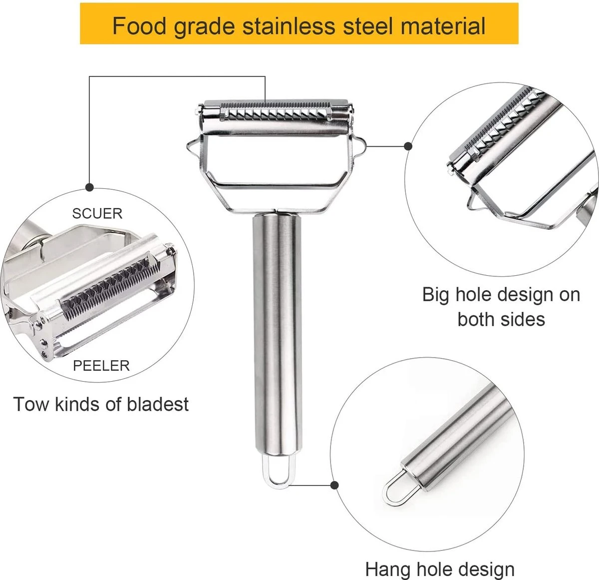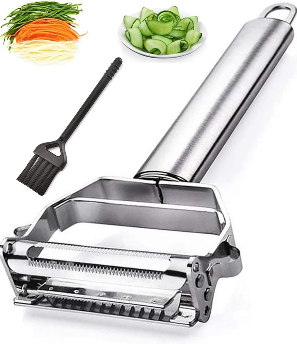 - MULTIFUNCTIONELE PEELER: AnGeer roestvrijstalen multifunctionele dunschiller met multifunctionele messen kan worden gebruikt voor het schillen of julienne van aardappelen, wortelen, appel, sinaasappel, komkommer en meer groenten en fruit. Het schillen, snijden en julienning zijn nog nooit zo eenvoudig geweest. De dunschiller is een door de chef geïnspireerde keukentool die je niet mag missen! Aardappelschillers zijn ook een geweldig cadeau voor je familie en je beste vriend.