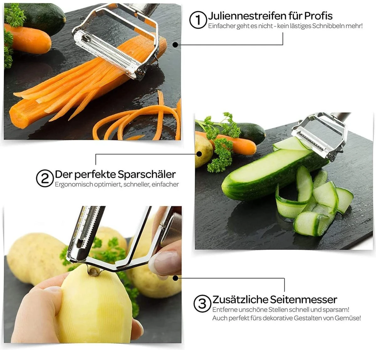 IGOODS Dunschiller Roestvrijstalen 2-in-1 Julienne Dunschiller Perfect voor Wortel Aardappel Meloen Gadget Groente Fruit