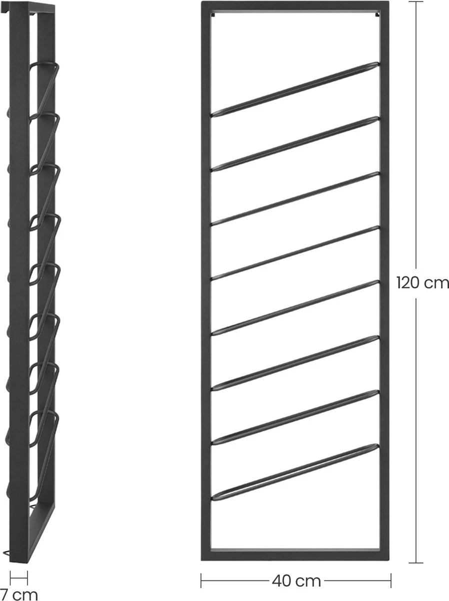 Wandmontage Weinflaschenhalter: Besthend aus schwarzem Metall, bietet der Flaschenhalter een schicke en praktische Ergänzung zu Ihrer Inneneinrichtung. Das Weinregal ist für bis zu zu 8 Flaschen ausgelegt and lässt sich beliebig in Ihrer Küche, im Wohnzimmer of in der eigen Hausbar montieren.
