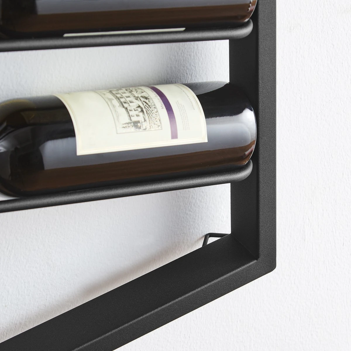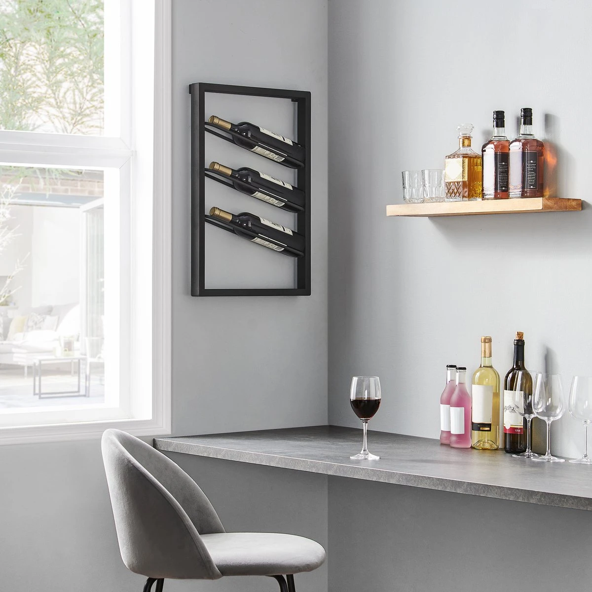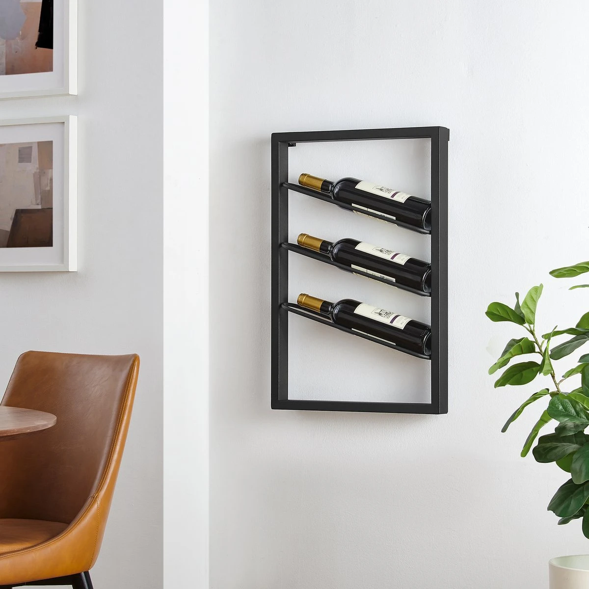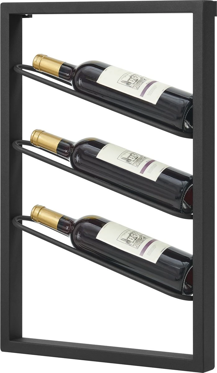 IN.HOMEXL Sandd – Hangend Wijnrek – Industrieel Flessenrek – Minimalistisch – Zwart – Metaal – Voor 3 Wijnflessen – 40 X 7 X 60 Cm