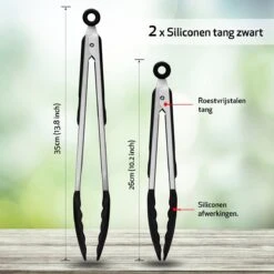 Alheco 3 Siliconen Serveertangen – BBQ Tang – Vleestang – Keukentang – Zilver/zwart