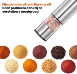 Elektrische Zout- En Pepermolen – Set 2 Stuks – RVS – Met LED-verlichting – Grofheid Verstelbaar
