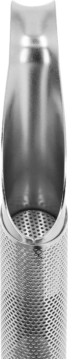 Het theefilter is gemaakt van roestvast staal en heeft de vorm van een pijp. Je schuift de pijp open en kunt zo losse thee in de tea infuser stoppen. Vervolgens schuif je de pijp dicht en doe je het kruidenfilter in het glas.