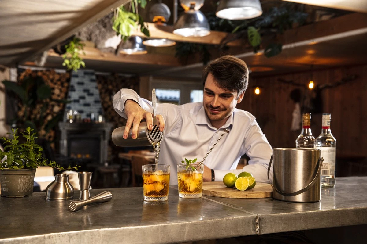 Glanzende barlepel met aan de ene zijde een gedraaide steel en aan de andere zijde een stamper. Ideaal voor het gedoseerd toevoegen van dranken of het creëren van laagjes in de cocktail.