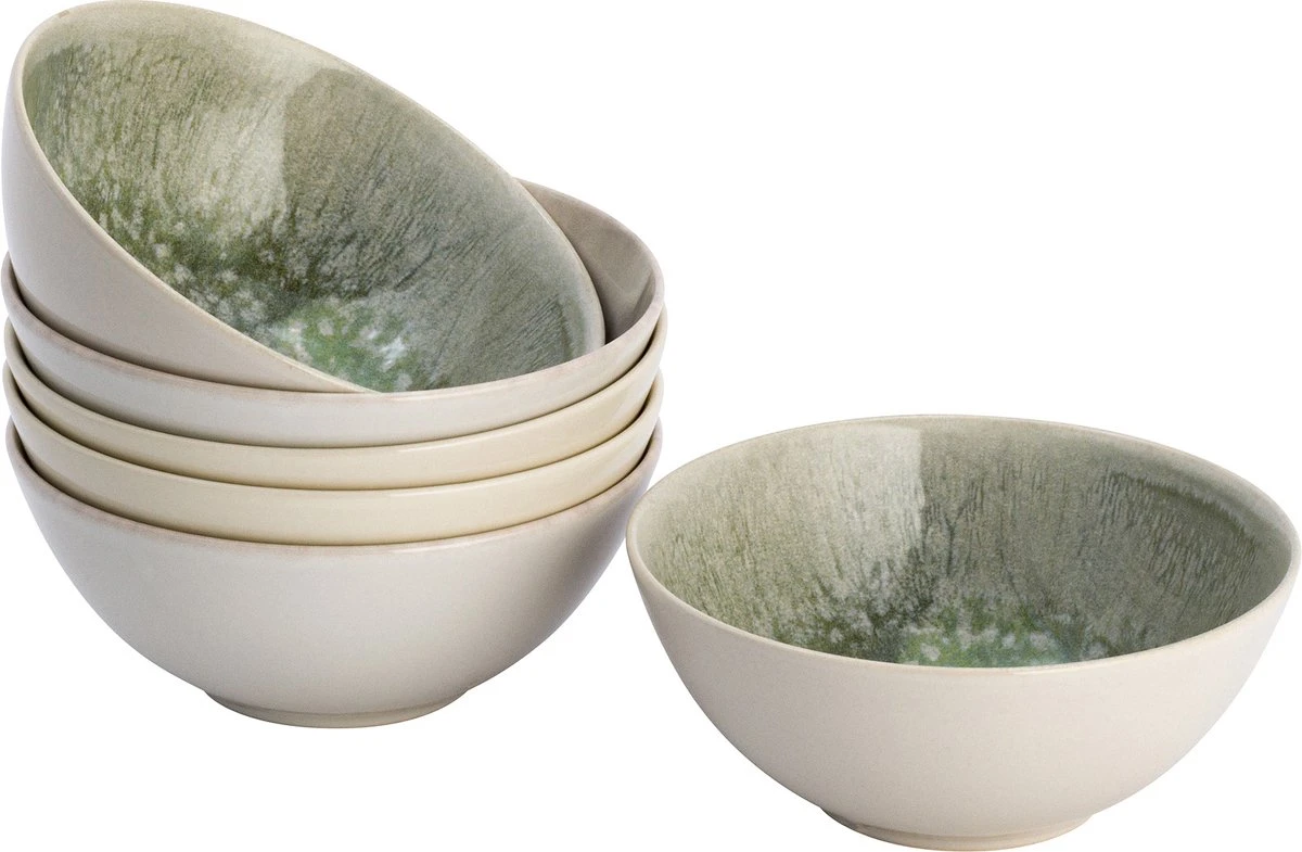 6 x Kom Lite-Body Hermes groen grijs reliëf , gemaakt van hoogwaardig stoneware. Leuk om te combineren met het overige Lite-Body assortiment!