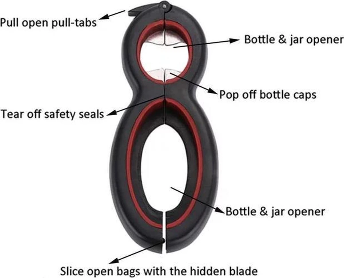 LOUZIR 6 In 1 Blikopener- Flesopener- Potopener- Deksel Opener- Gereedschap Om Doppen Van Flessen En Potten Te Verwijderen