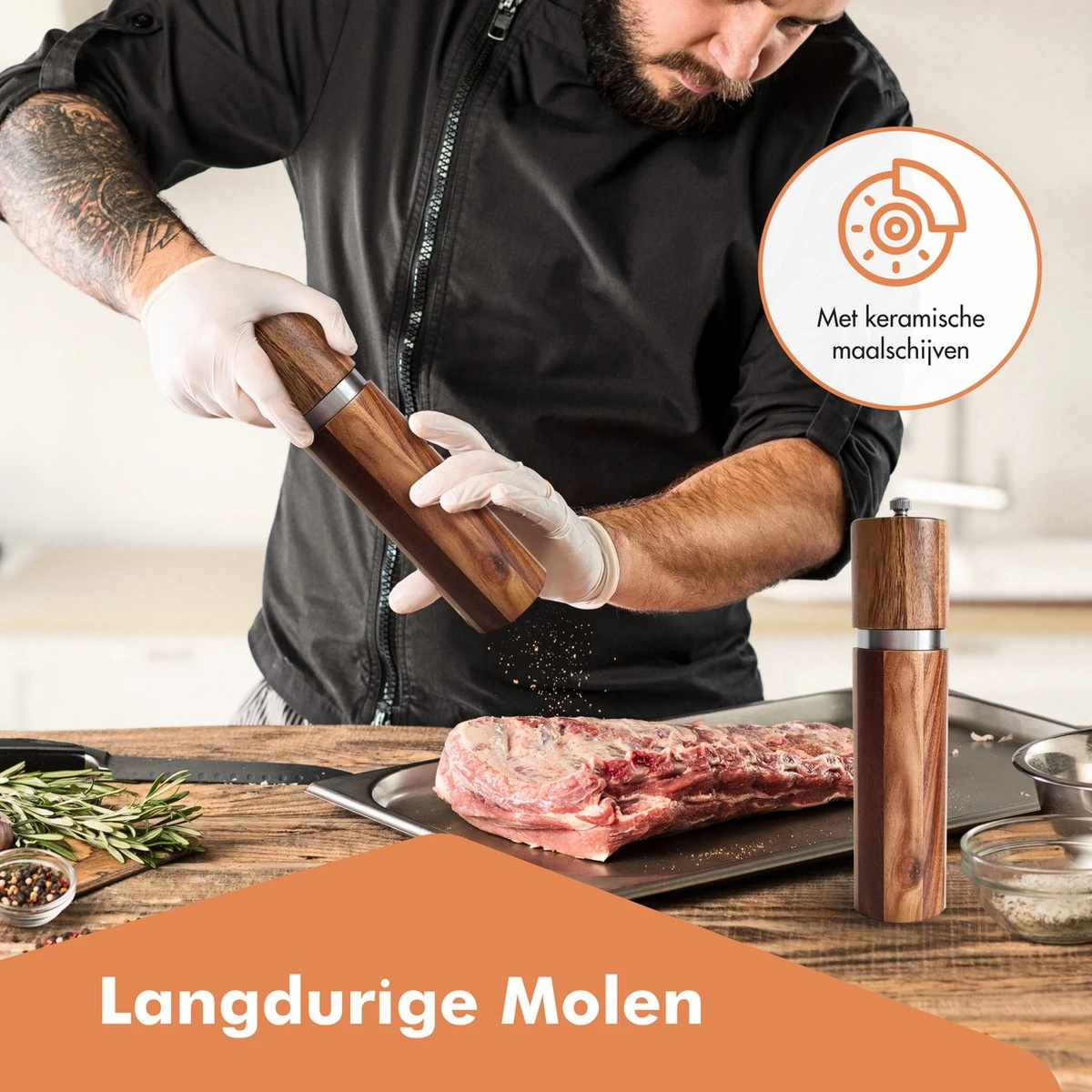 ‣ Peper en Zoutmolen van Acaciahout in Luxe verpakking