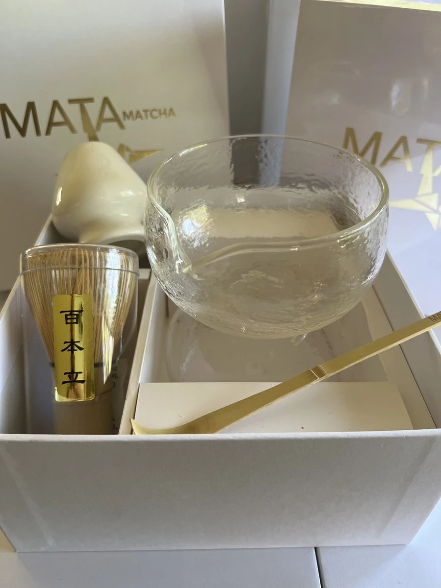 Matcha Starterset gehamerd glas