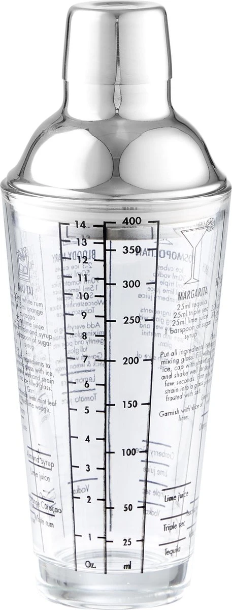 Merkloos DAY – Cocktailshaker – 400ml – Met Opdruk Van Recepten