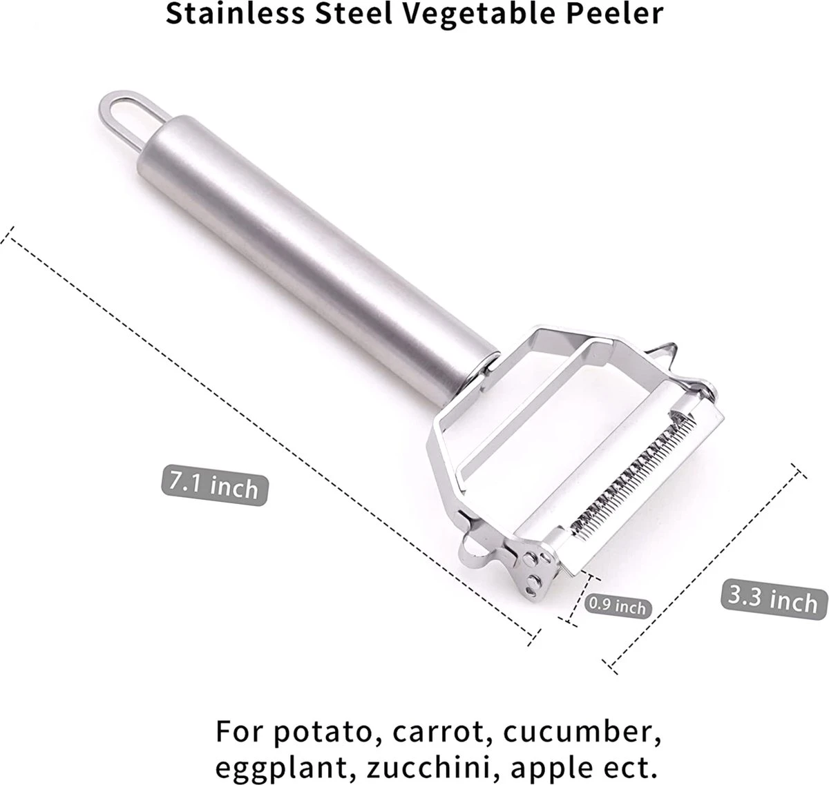 【Handige keukenhulp】 Deze ultrascherpe dunschiller met twee messen kan worden gebruikt voor het schillen en julienen van alles, van appels en peren tot wortelen, komkommers, aardappelen, pompoen en courgette, gemakkelijker en efficiënter. Je maakt in korte tijd prachtige maaltijden en daarmee kun je meedoen aan de revolutionaire rage van afvallen.