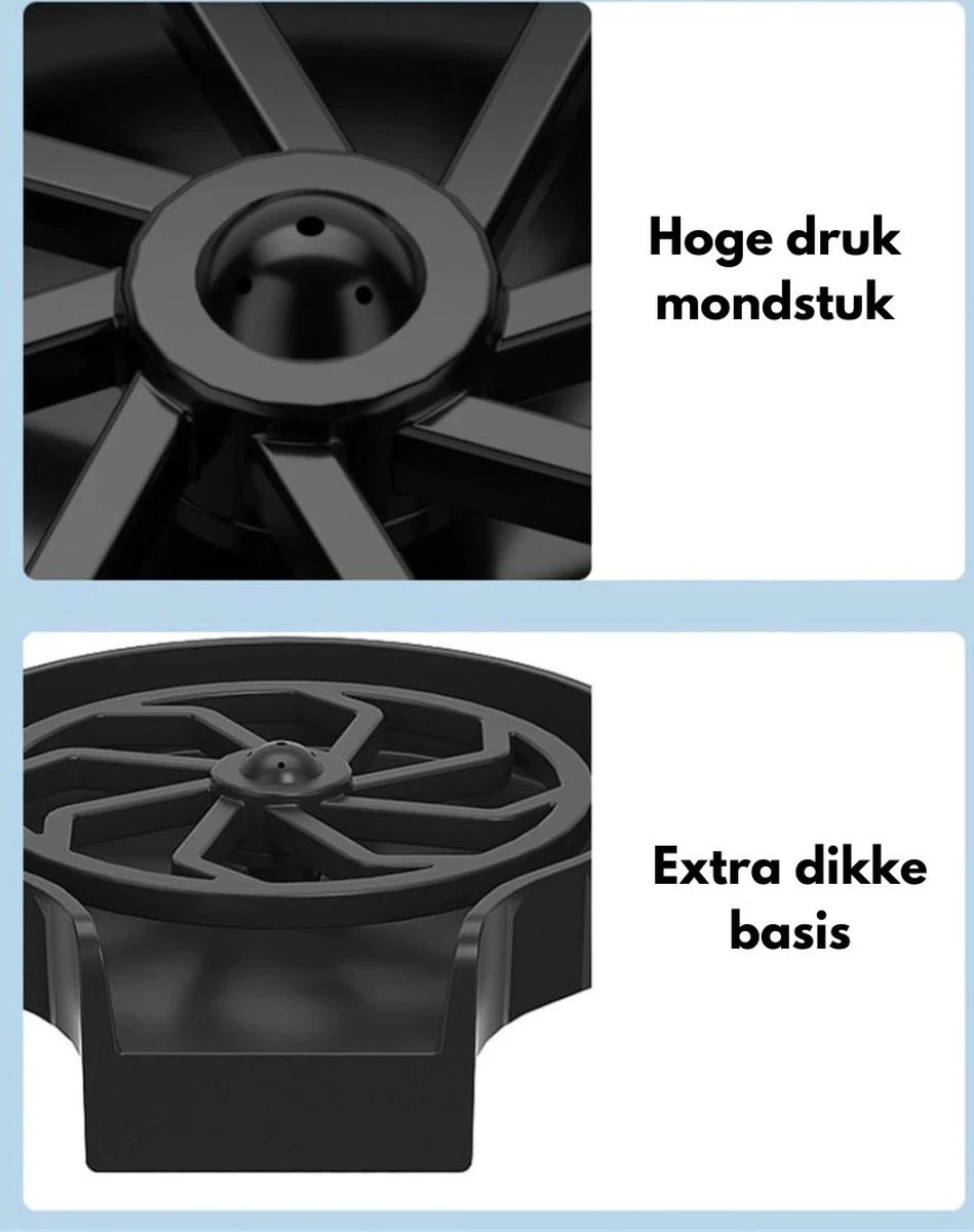 Efficiënt – Deze Glazenwasser is er om efficiënt te reinigen, met de hoge druk mondstuk en de verdikte basis zijn uw glazen binnen een paar seconden schoon.