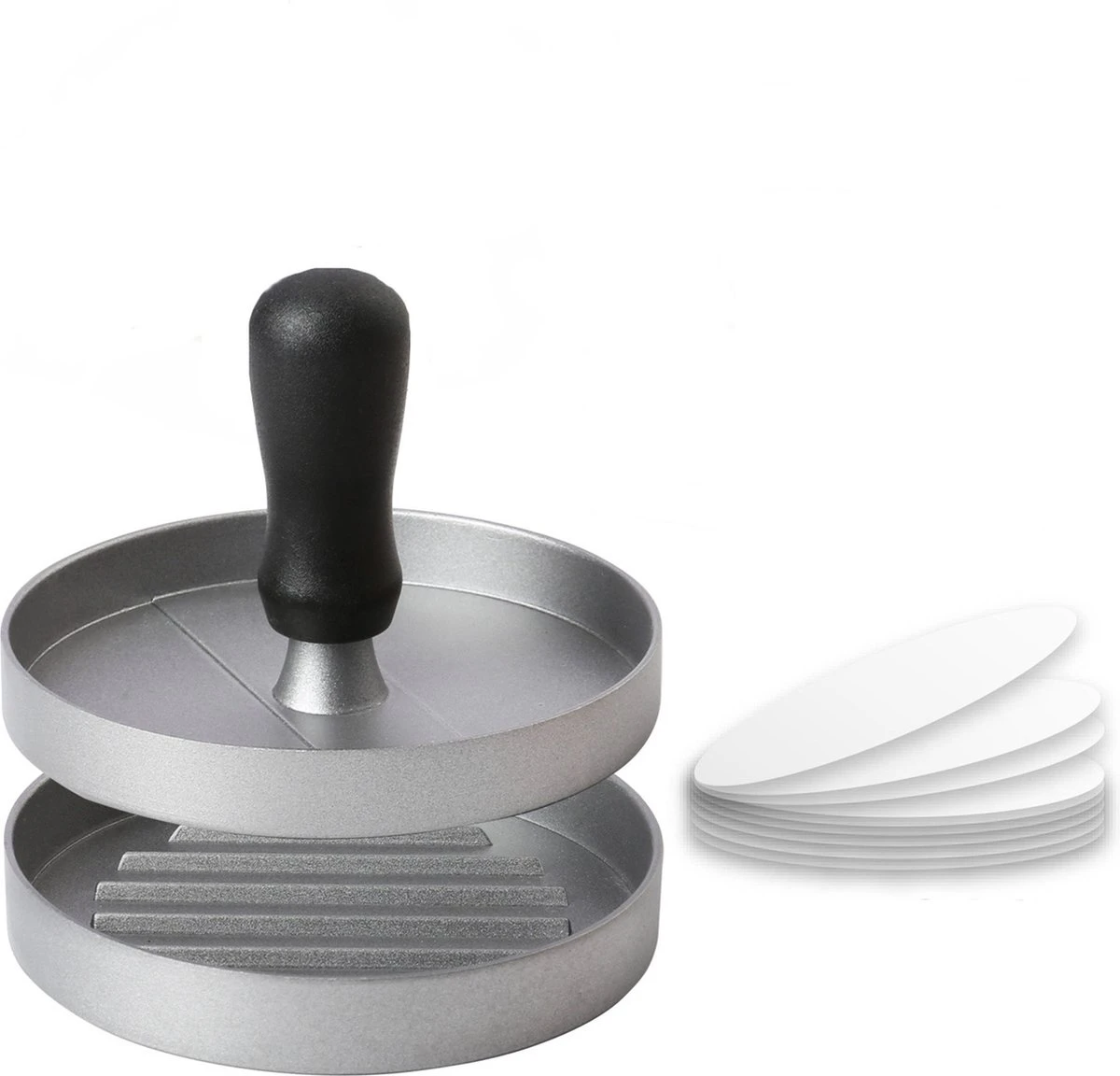 Ben je ook altijd jaloers op die mooi gevormde hamburgers die je in de koeltoog van de slager ziet? Probleem opgelost: vanaf nu maak je met deze stevige en duurzame hamburgerpers zelf heerlijke home made burgers.