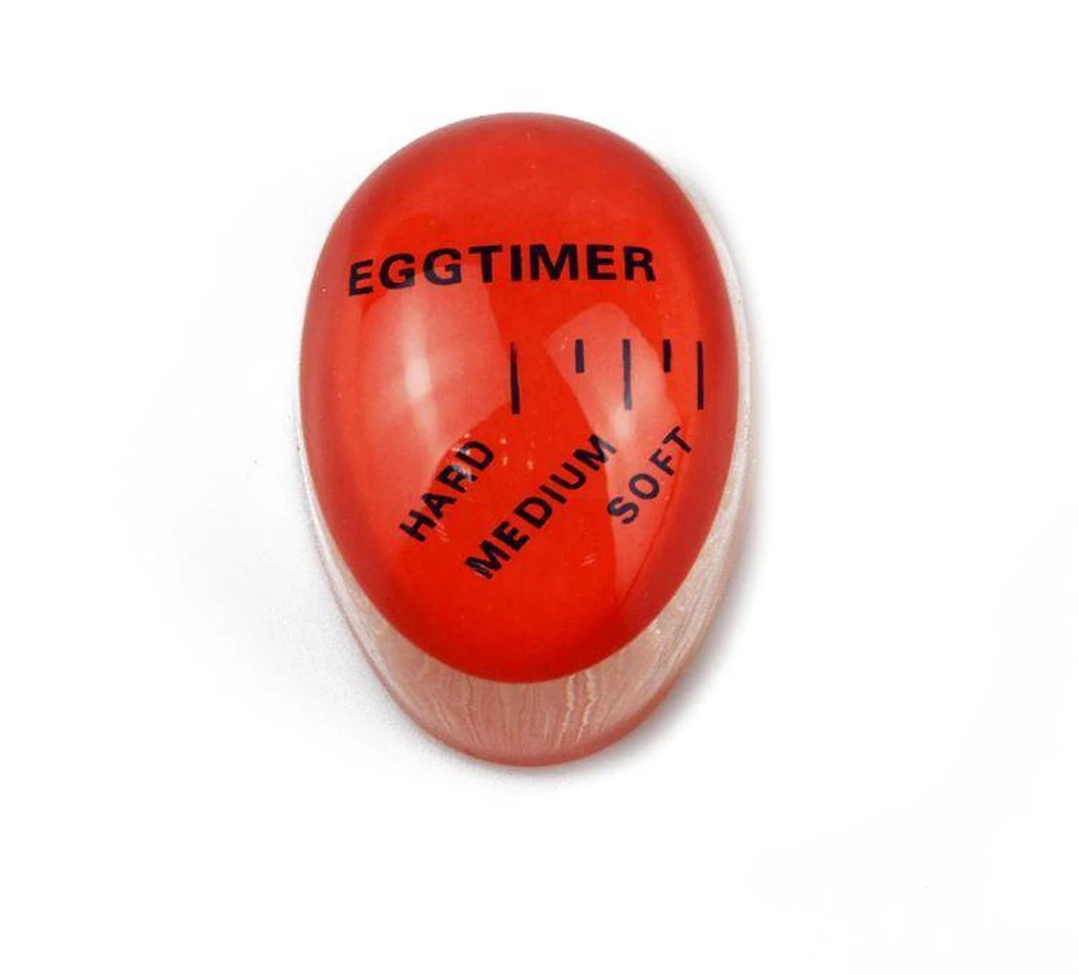 Dit ei wekker verandert van kleur zodat je precies weet of je een hard of zacht ei hebt. Is het ei bijna helemaal rood dan is het een zacht gekookt ei.