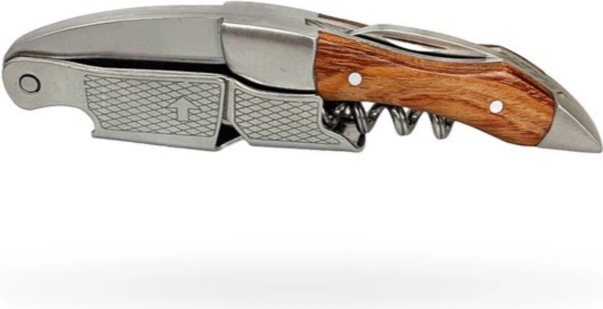 Vervaardigd uit sterk roestvrij staal gecombineerd met duurzaam hout is deze kelnerskurkentrekker gemaakt met de bedoeling om lang mee te gaan.