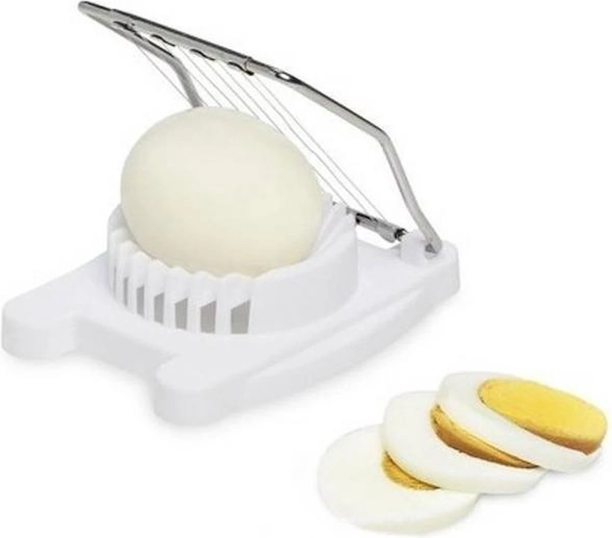 RVS eiersnijder. Dankzij deze eiersnijder snijdt men gemakkelijk een ei in plakjes. Materiaal: kunststof en RVS. Formaat: 10,5 x 8 x 2,6 cm.
