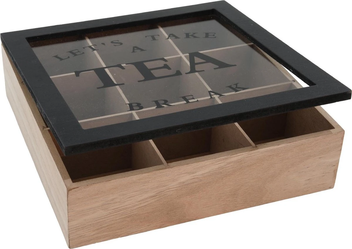 Theekist – Bruin – Hout 9-Vaks – Glazen Deksel – Theedoos – Tea Break