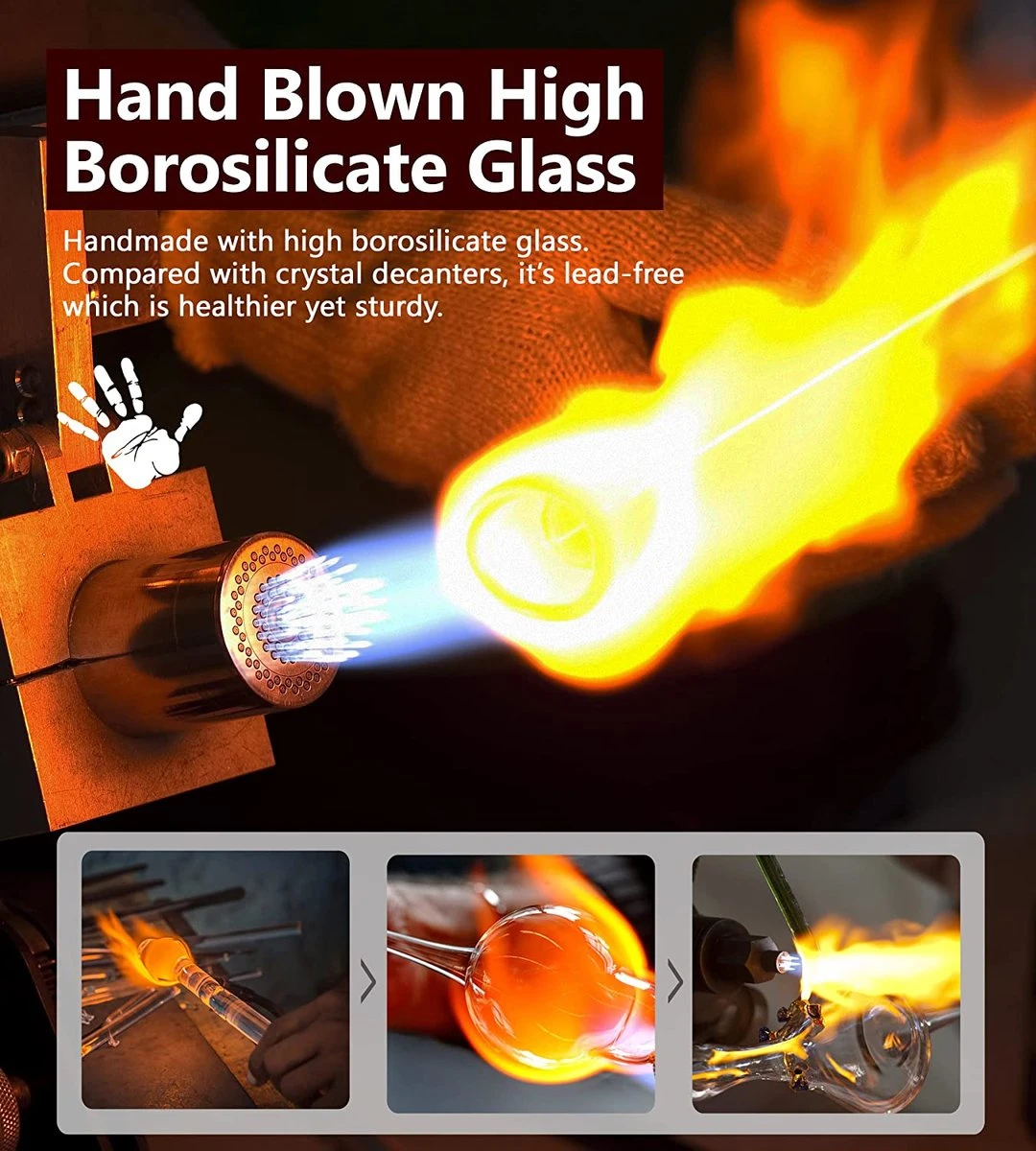 - LARGE AND LEAD FREE AND HANDBLOWS: Large and lead-free and hand blown: This large decanter set is 21.7″ high x 7.9″ wide. Imagine how cool it will look in your bar, office or on a shelf. The boro silicate glass sword is more delicate but less fragile. It uses natural lead-free material and has been blown by hand by skilled craftsmen.