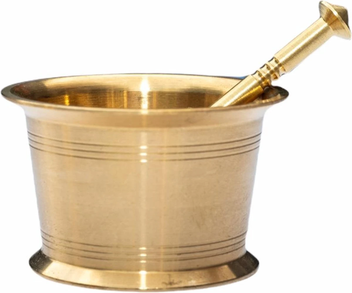 Maal jouw saffraan fijn met deze traditionele Perzische gouden vijzel van messing. De vijzel is voorzien van een bijpassende gouden messing stamper. Door het vermalen van de saffraan komt de heerlijke geur en smaak van de saffraan vrij. Ook andere kruiden en specerijen kan je makkelijk fijnmalen met de vijzel. Deze gouden vijzel en stamper zijn niet alleen praktisch, maar ook een echte eyecatcher in je keuken. Een touch of gold in je interieur kan nooit kwaad. De vijzel is een compact product die je makkelijk kwijt kan in iedere keuken.