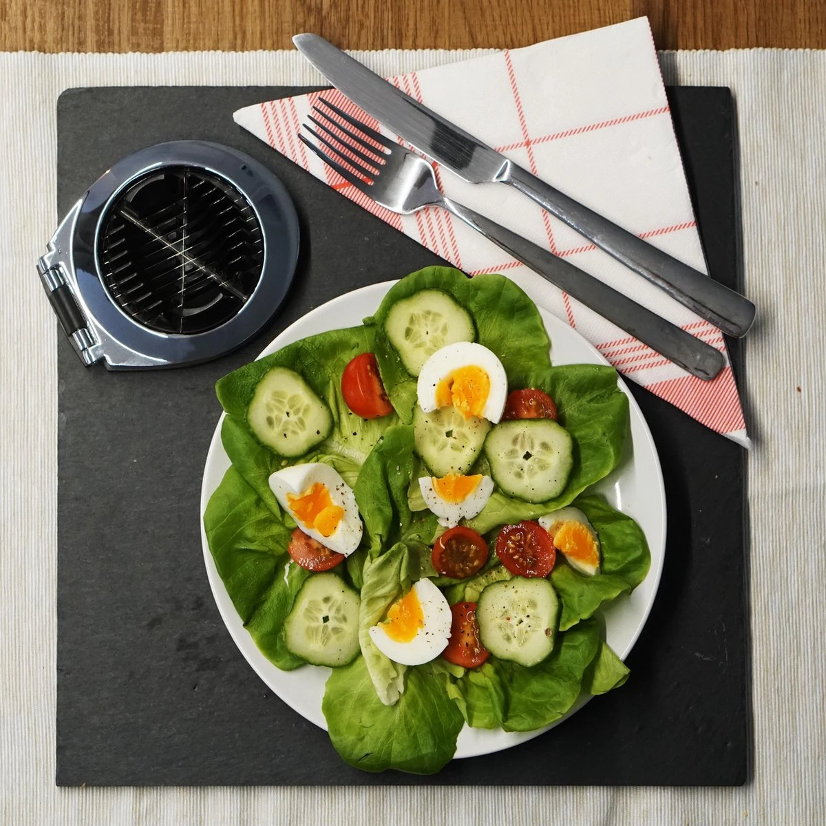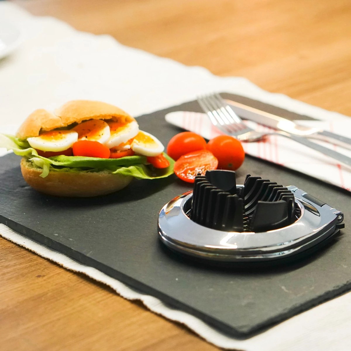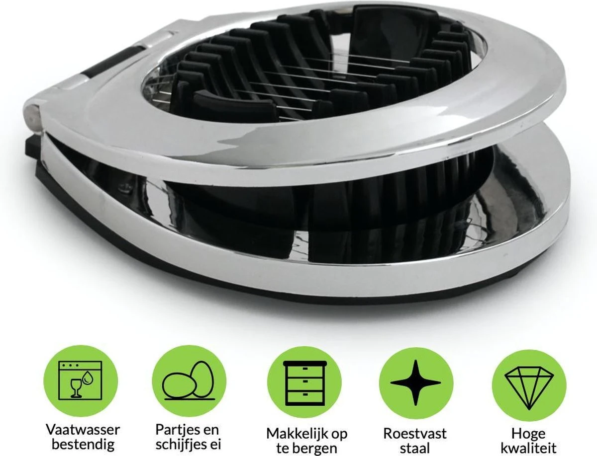 - Zorgt voor mooie gelijke stukken ei