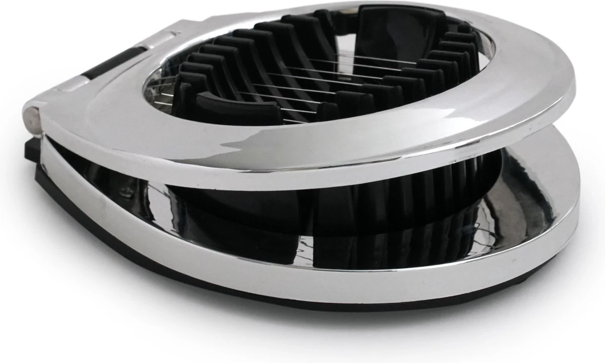 Deze roestvrijstalen eiersnijder maakt het snijden van gekookte eieren erg makkelijk. Een ideaal keukengerei om een gekookt ei op verschillende manieren te snijden voor bijvoorbeeld een lekkere salade! De eiersnijder kan het ei snijden in gelijke reepjes of in zes gelijke partjes. Deze handige eiersnijder valt niet te missen in het alledaagse keukengerei!