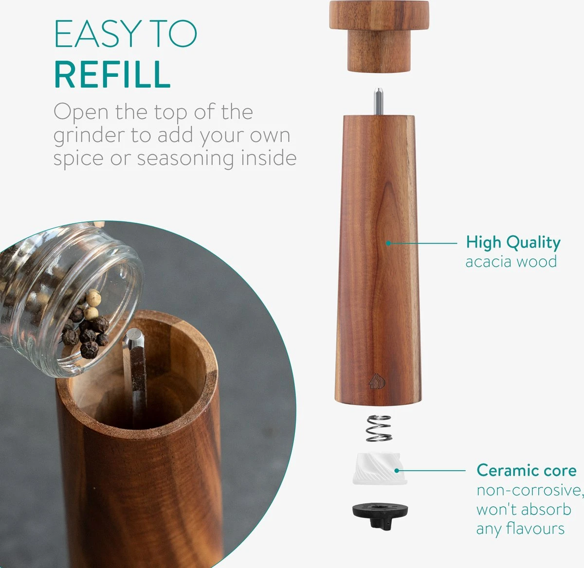 - VERSE KRUIDEN: De molens zijn gemaakt van hoogwaardig acaciahout en heeft geen invloed op de smaak of de geur van je specerijen.
