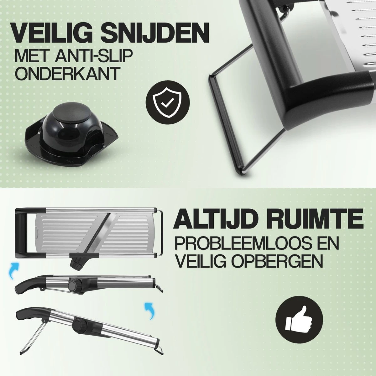 De verstelbare groentesnijder is een aanwinst voor elke keuken. Met verstelbare messen kan de mandoline elk ingrediënt aan en hoef je nooit meer opzoek naar extra keukengereedschap.