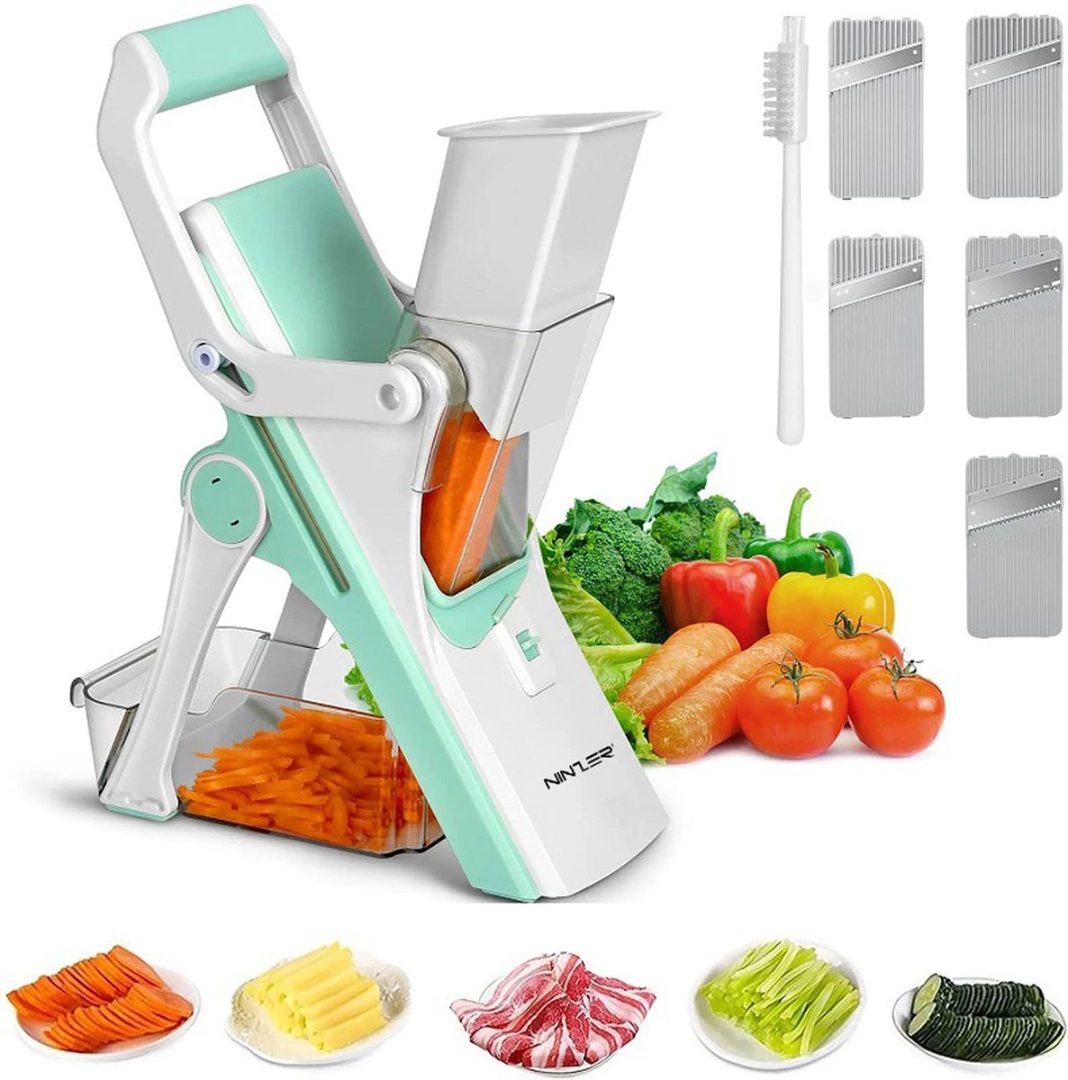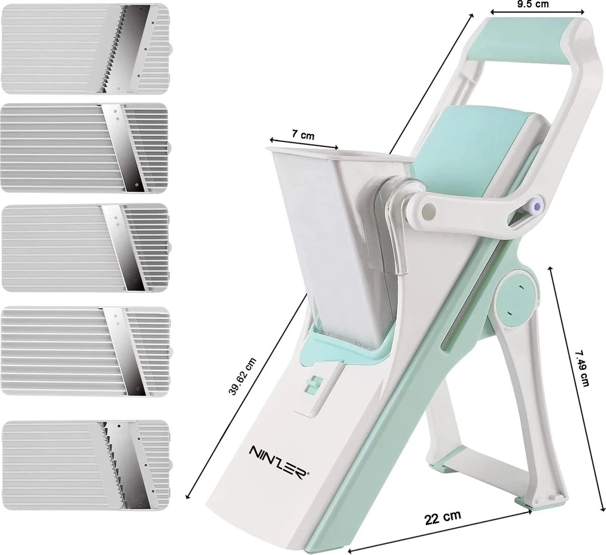 Een mandoline of een keukensnijder is een multifunctioneel apparaat voor in de keuken. Als je eenmaal deze keukensnijder hebt, hoef je dus niet meer al die verschillende mesjes te kopen. Met deze keukensnijder van Ninzer worden friet, groenten en fruit in gelijkvormige schijfjes, staafjes of reepjes heel eenvoudig en mooi gesneden.
