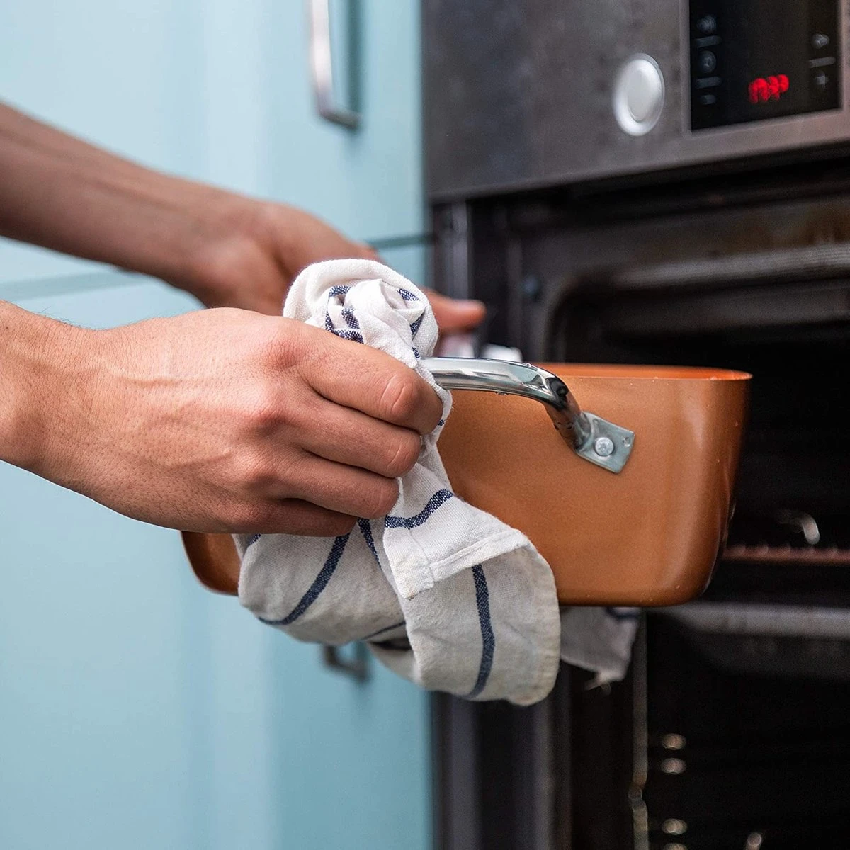 De pannen zijn geschikt voor alle soorten kookplaten, inclusief gas, elektrische of inductiekookplaat. Hittebestendig tot 287 ° C / 550 ° F, waardoor het ovenbestendig is. snel, gelijkmatig koken. Vaatwasmachinebestendig en gemakkelijk schoon te maken
