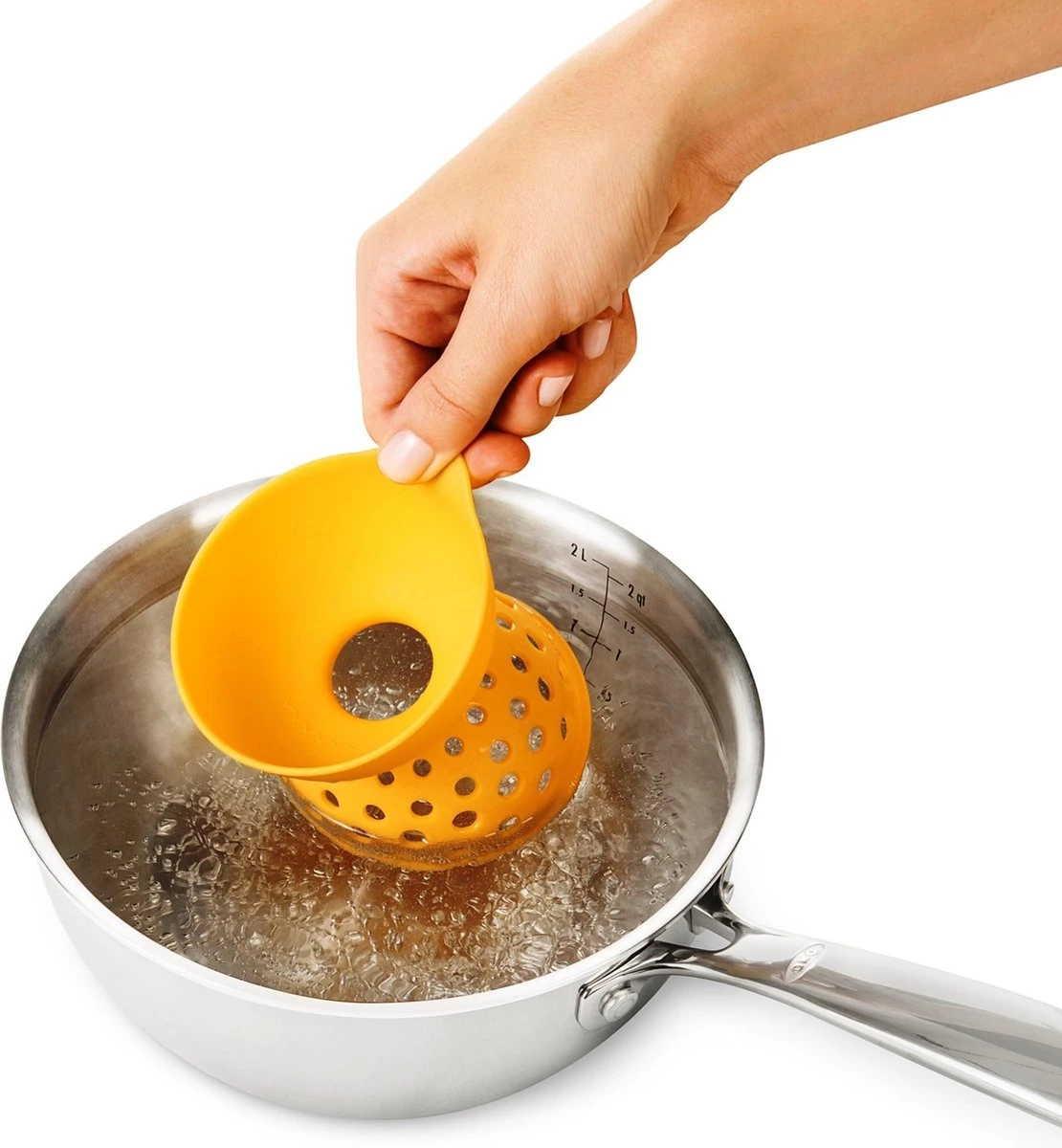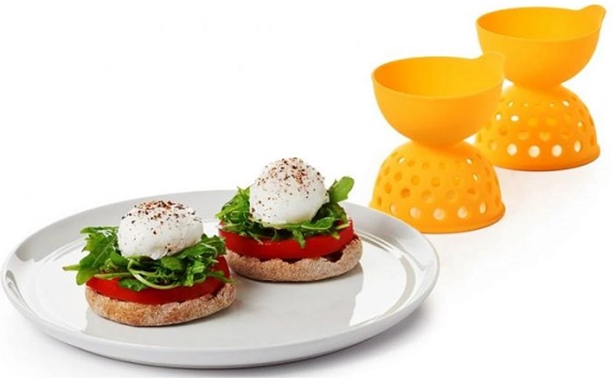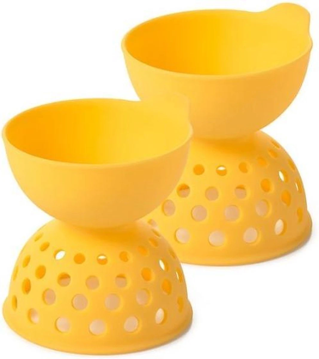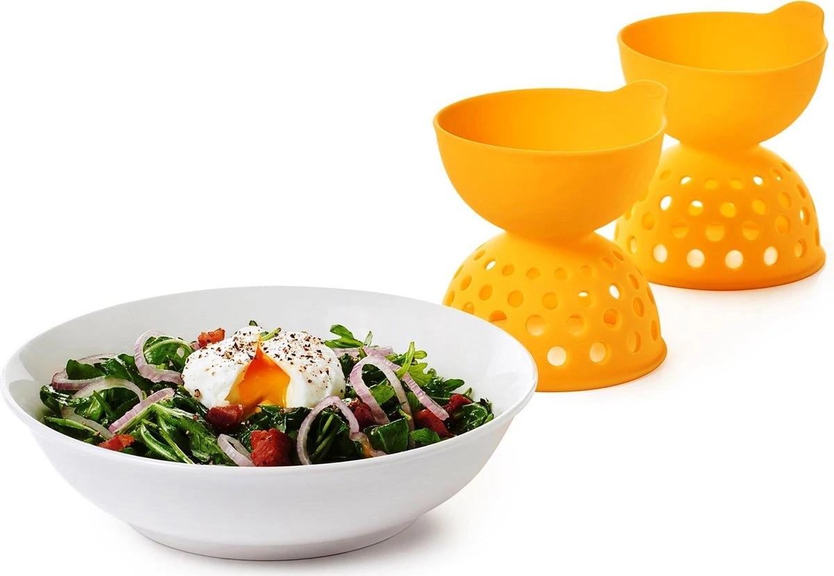 Met deze eierpocheerder van OXO Good Grips maakt zelfs een beginneling een perfect gepocheerd ei. De trechtervorm geleidt het ei voorzichtig in het kokende water en houdt het ei tijdens het koken bijeen. De onderzijde is geperforeerd zodat het water rond het ei kan circuleren. Als het ei klaar is, gebruik je de tab om de pocheerder veilig uit het water te nemen. De eierpocheerder is gemaakt van hittebestendig siliconen en mag na gebruik in de vaatwasmachine. Deze set bevat 2 pocheerders.