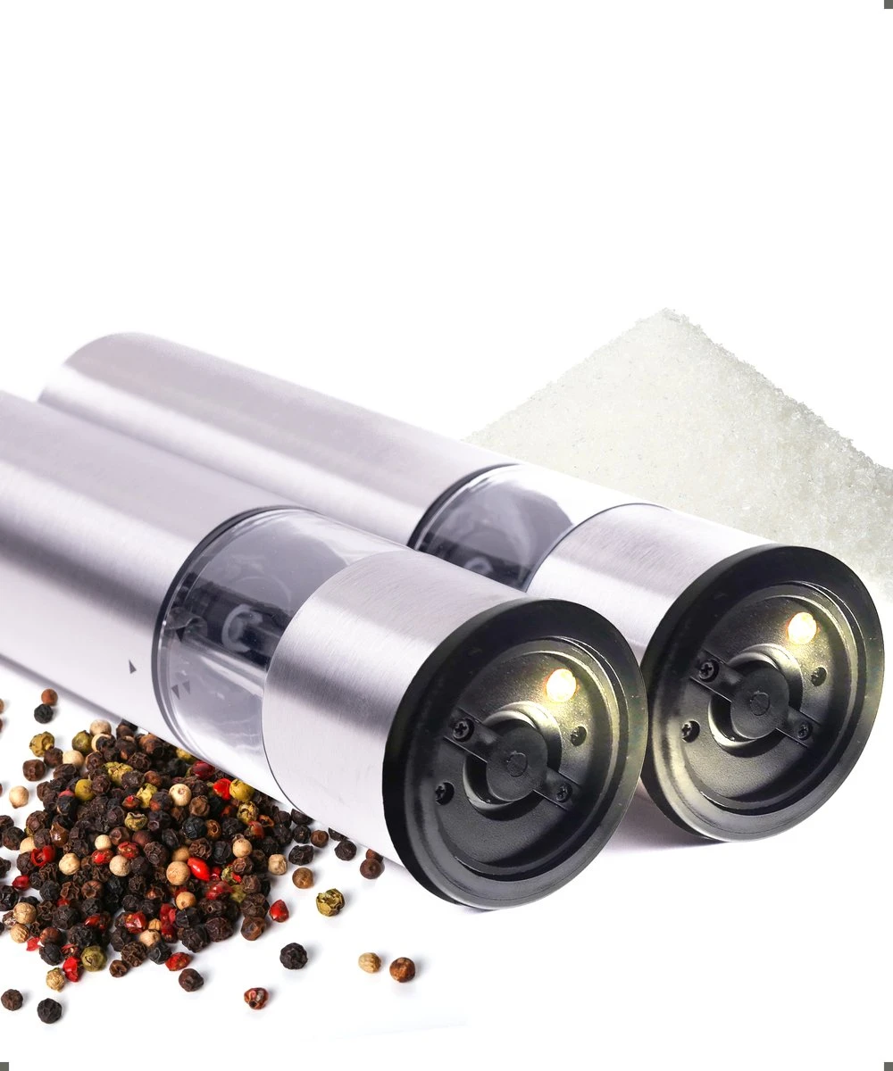Deze elektische peper en zoutmolen met LED verlichting zorgt ervoor dat je perfect kunt doseren. Dankzij de behuizing van roestvrij staal en het ontwerp van de acrylkamer zijn de molens uiterst duurzaam en is er geen risico op glasbreuk.