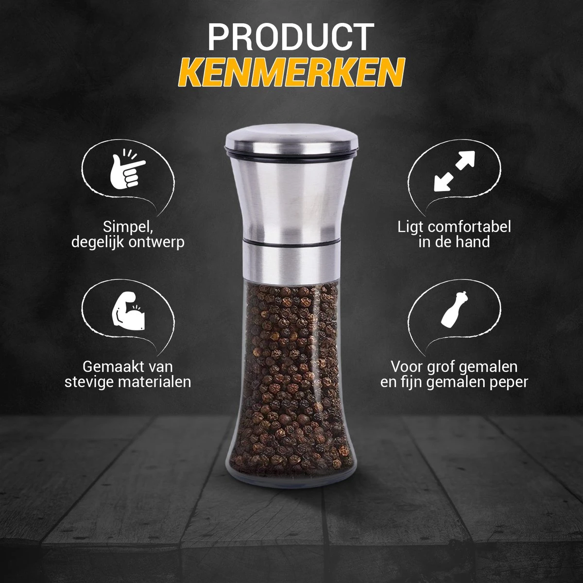 ✔ Voor grof gemalen en fijn gemalen peper en/of zout.
