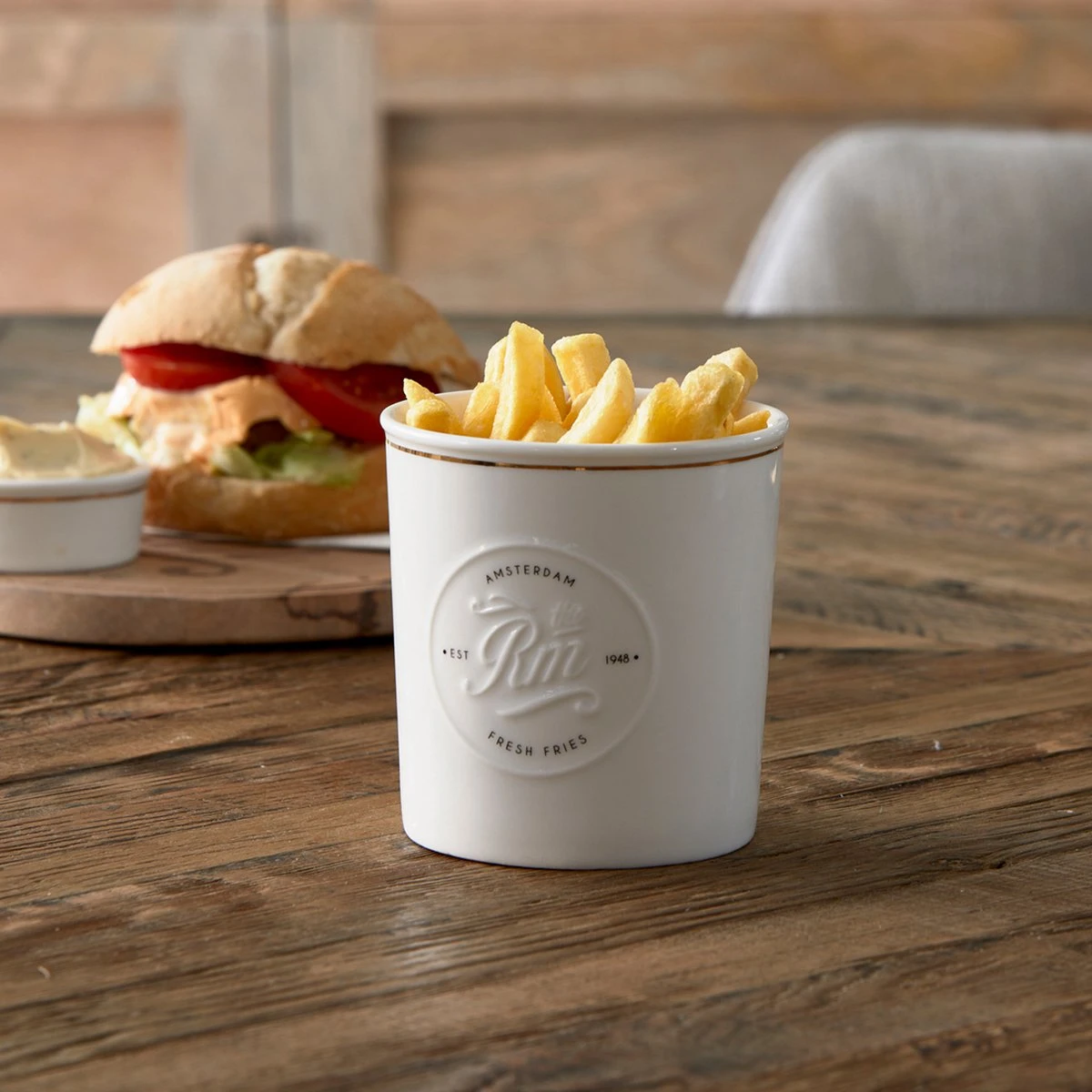 Riviera Maison Frietbakje, Serveerschaal Patat – RM Fresh Fries Serving Bowl – Wit – Porselein – 1 Stuk